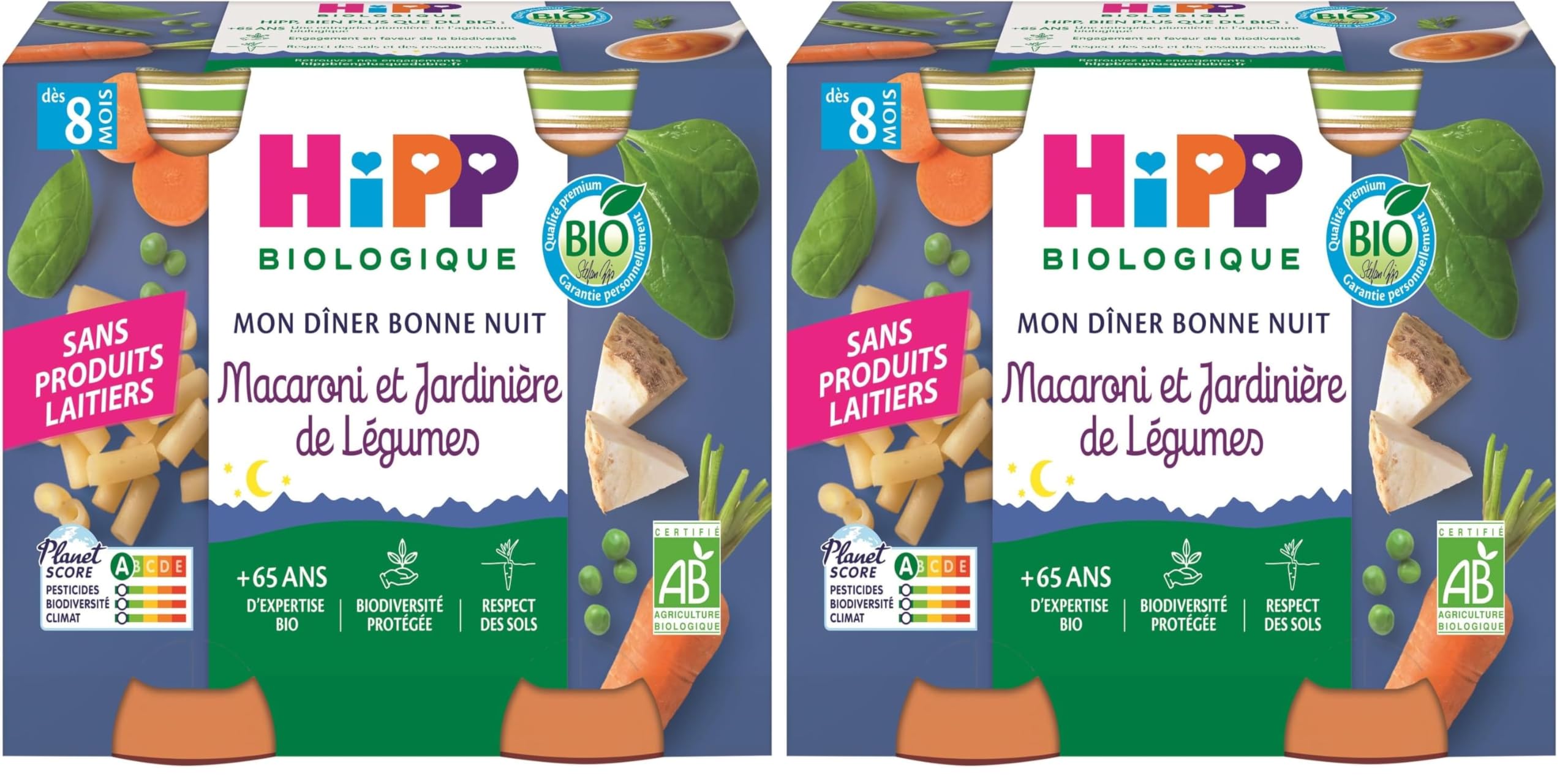 HiPP - Mon D ner Bonne Nuit - Macaroni et Jardini re de L gumes - Pots 2 x 190 g (Lot de 2) Pack of 2