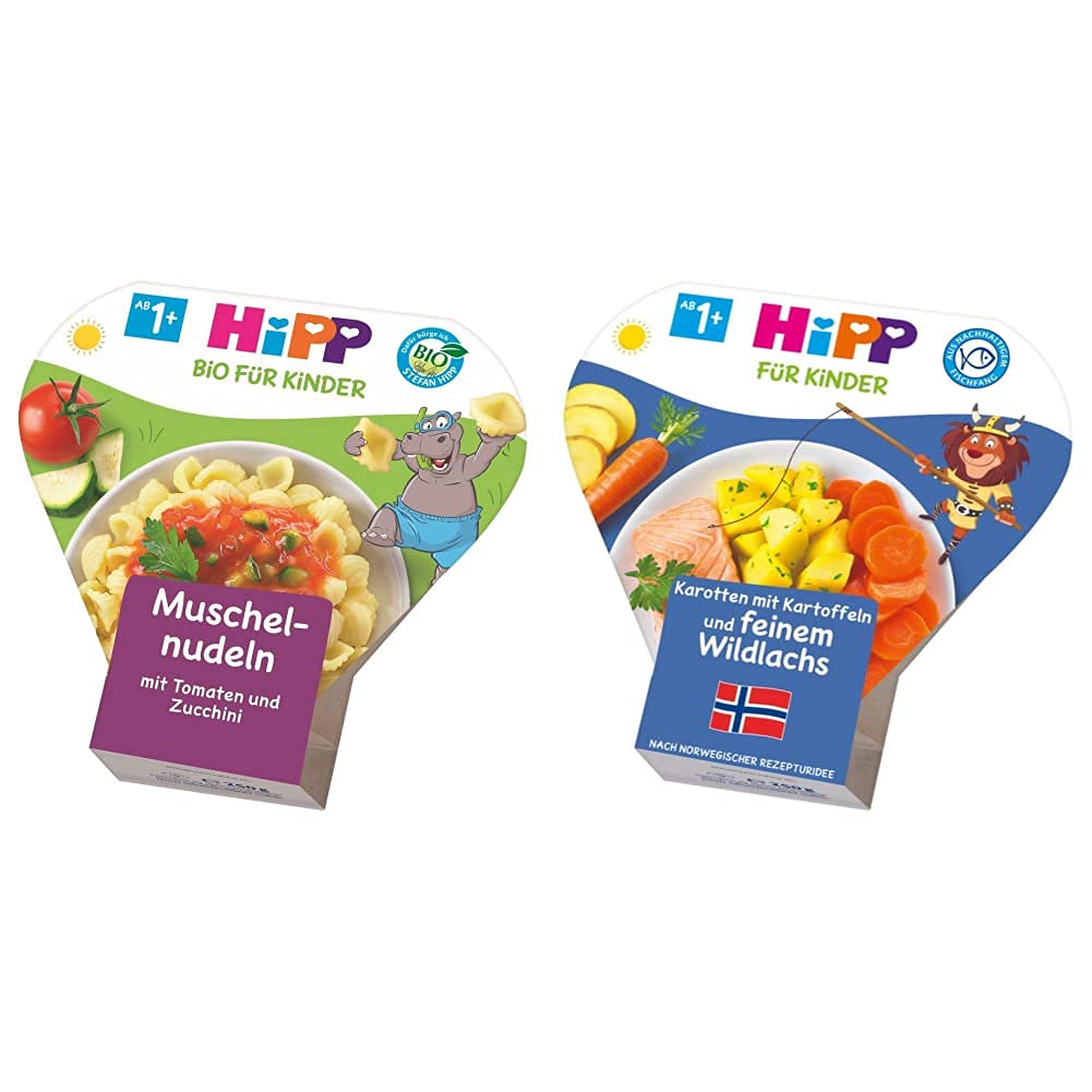 Hipp mussel noodles with tomatoes and zucchini organic, 6er pack (6 x 250 g) Hipp mussel noodles with tomatoes and zucchini Hipp children's plate, carrots with potatoes and fine wild salmon, 6-pack (6 x 250g) Hipp children's plates, carrots with potatoes and fine wild salmon hipp children's bio plates offer your little gourmet as healthy as well as varied meals in many delicious varieties.The tasty menus are geared towards child's nutritional needs in their nutritional values and the composition.