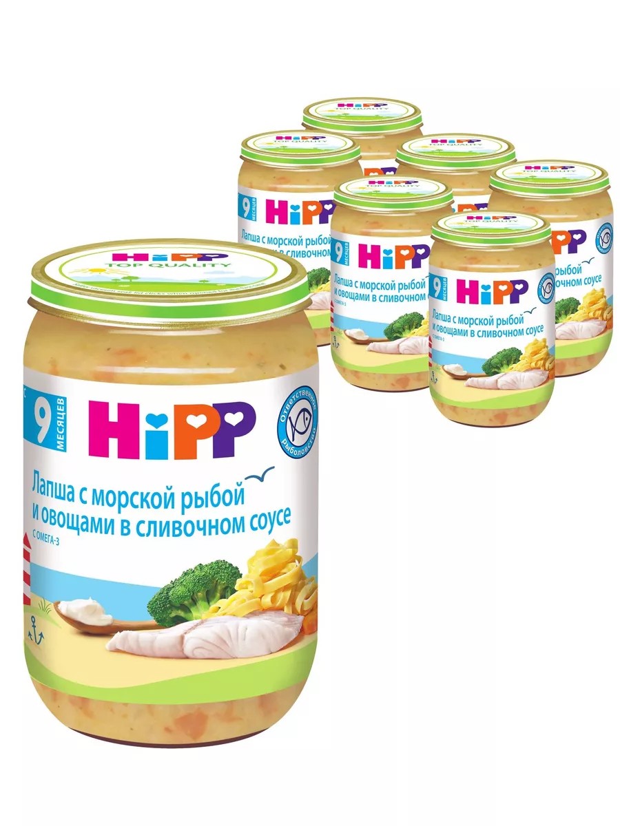 Рыбо-овощное пюре ""Лапша с морской рыбой и овощами в сливочном соусе"" HiPP - это продукт высшего качества: