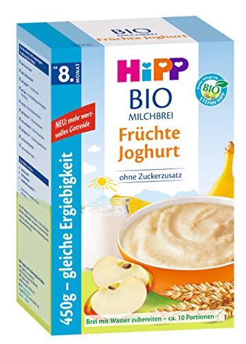 Hipp unsweetened organic milk porridge fruit yogurt from strictly selected organic ingredients provides your child a soothing and filling meal with valuable vitamins.It is easy to prepare with freshly boiled water in no time. Ingredients / ingredients Wheat semolina*, 27% apple puree²*, whey product*, 10% low milk powder*, vegetable oils*(palm oil?, rapeseed oil*, sunflower oil*), 1.8% banana flakes1*, 1.3% lean milk yoghurt powder*, calcium carbonate, apple extract, vitamin C, Ice diphosphate, vitamin E, vitamin B1, vitamin A, potassium iodate, vitamin D. Instructions Close the open bag again after the product removal, keep cool, dry and hygienic-use content within 3-4 weeks. Address manufacturer/importer Cool (<25 °) and store dry.Hipp GmbH & Co. Sales KG / D-85276 Pfaffenhofen (Ilm) Pour water with water.rich in valuable vitamins.Unique hipp organic quality.Souping baby election.Without adding sugar (natural sugar content from the ingredients). HiPP ungesüßter BIO Milchbrei Früchte Joghurt aus streng ausgewählten BIO-Zutaten liefert Ihrem Kind eine wohltuende und sättigende Mahlzeit mit wertvollen Vitaminen. Kinderleicht mit frisch abgekochtem Wasser ist er im Nu zubereitet. INHALTSSTOFFE / ZUTATEN Weizengrieß*, 27% Apfelpüree² *, Molkenerzeugnis*, 10% Magermilchpulver*, pflanzliche Öle* (Palmöl?, Rapsöl*, Sonnenblumenöl*), 1,8% Bananenflocken1 *, 1,3% Magermilchjoghurtpulver*, Calciumcarbonat, Apfelextrakt, Vitamin C, Eisendiphosphat, Vitamin E, Vitamin B1, Vitamin A, Kaliumjodat, Vitamin D. GEBRAUCHSANWEISUNG Den geöffneten Beutel nach Produktentnahme wieder verschließen, kühl, trocken und hygienisch aufbewahren – Inhalt innerhalb von 3-4 Wochen aufbrauchen. ANSCHRIFT HERSTELLER/IMPORTEUR Kühl (<25°) und trocken lagern. HiPP GmbH & Co. Vertrieb KG / D-85276 Pfaffenhofen (Ilm) Mehrmit Wasser aufgießen. reich an wertvollen Vitaminen. einzigartige HiPP BIO-Qualität. sättigende Babymahlzeit. Ohne Zuckerzusatz (natürlicher Zuckergehalt aus den Zutaten).Hipp Bio-Milchbrei Früchte Joghurt, 2er Pack (2 x 450g)
