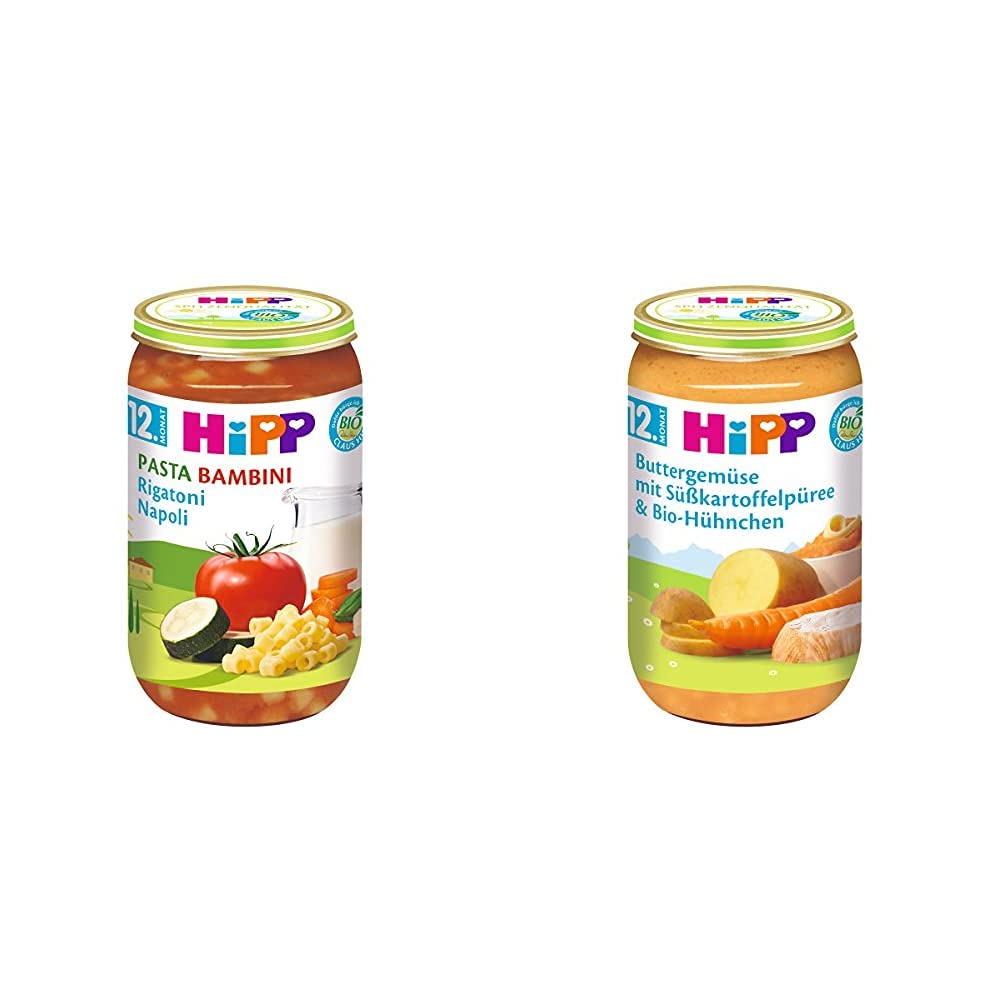 Hipp pasta bambini-rigatoni napoli 6 Pack (6 x 250 g) & butter vegetables with sweet potato puree and organic chicken 6 Pack (6 x 250 g) bundle with butter vegetable rigatoni napoli & for small gourmet menus Bulgur vegetable pan with chickpea and organic