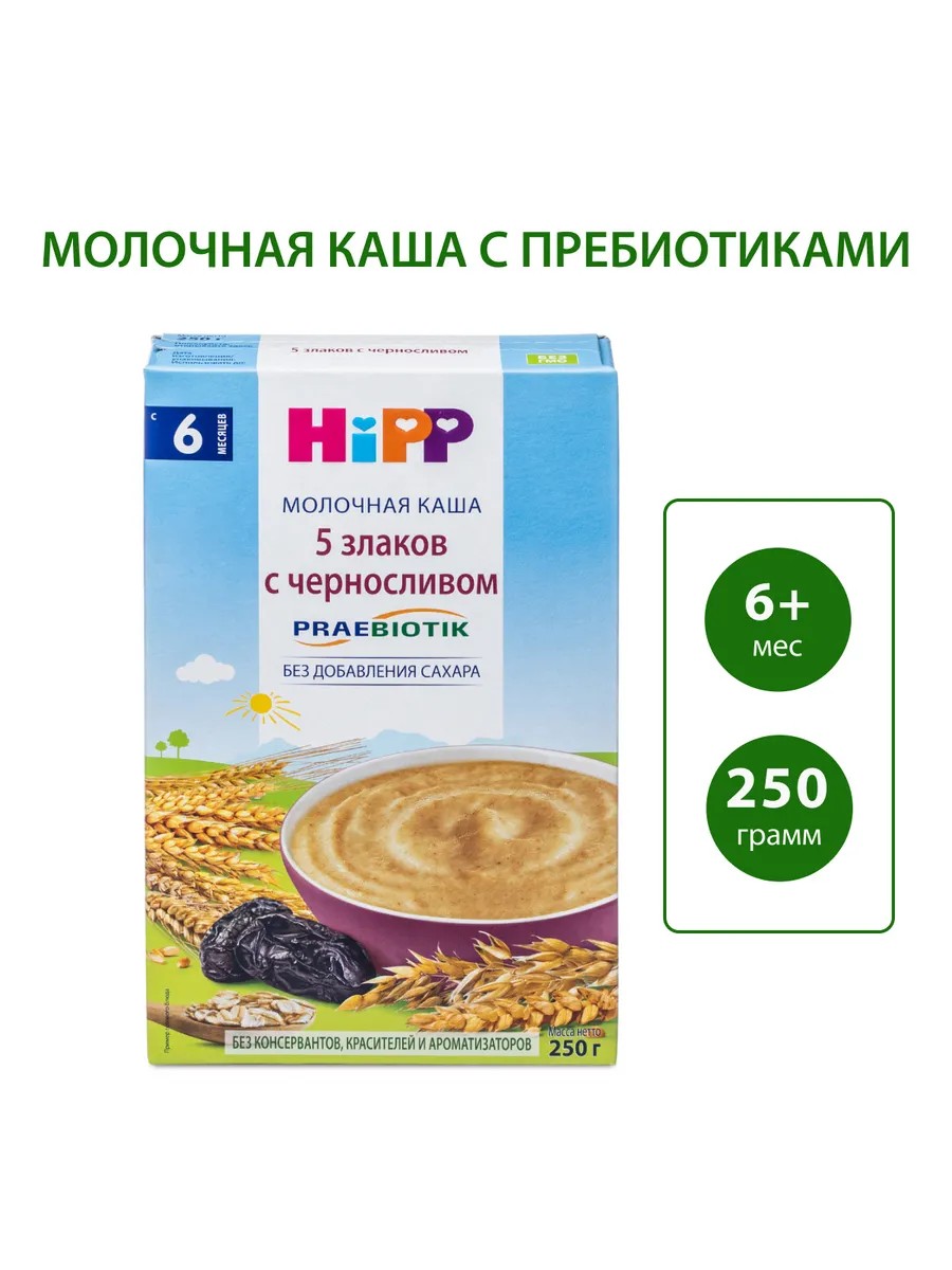 "Каша молочная HiPP с пребиотиками «5 злаков с черносливом» для детей с 6 месяцев.