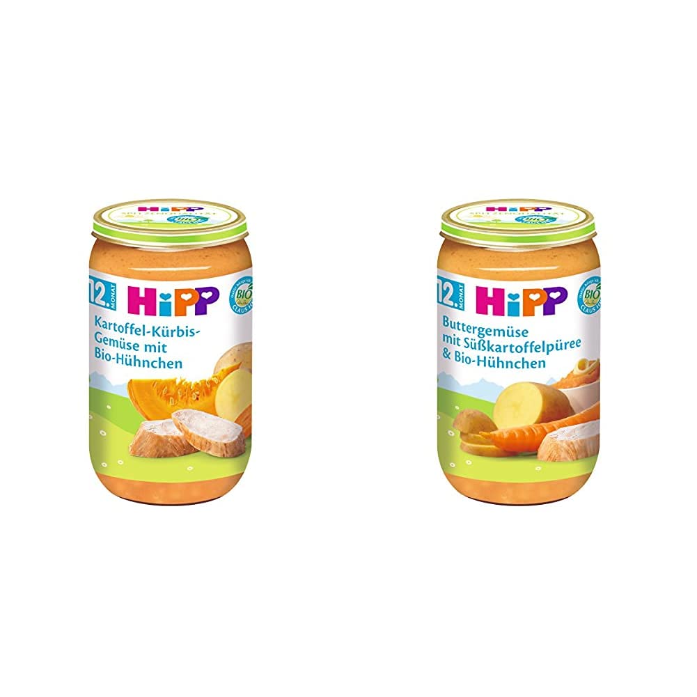 HiPP Kartoffel-Kürbis-Gemüse mit Bio-Hühnchen, 6er Pack (6 x 250 g) & Buttergemüse mit Süßkartoffelpüree und Bio-Hühnchen, 6er Pack (6 x 250 g) Bundle mit Buttergemüse