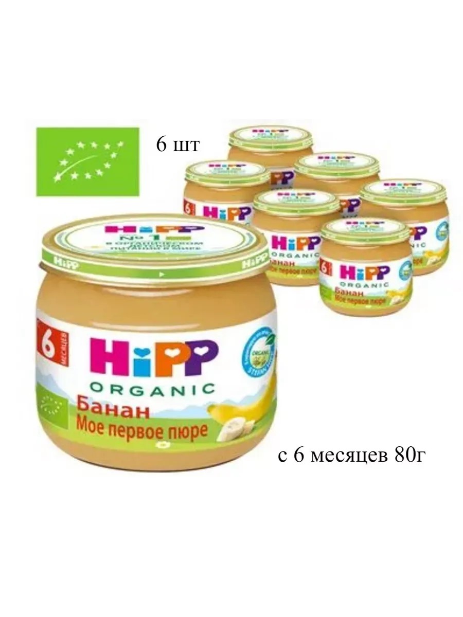 Фруктовое пюре HIPP Банан для первого прикорма особенно полезно благодаря содержанию витамина С.Строго контролируется наотсутствие вредных веществ."Банан. Мое первое пюре". Пюре фруктовое, гомогенизированное, стерилизованное, для питания детей раннего возраста. Органический продукт. Зелено-голубой знак HiPP Organic гарантирует наивысшее качество органического продукта. Стандарты качества HiPP превышают требования Европейского законодательства EU-BIO. 100% органические фрукты. Без добавления крахмала и сахара. Без консервантов, красителей и ароматизаторов. Без ГМО. Содержит сахара природного (естественного) происхождения.Состав: пюре банановое, восстановленный лимонный сок.Микро и Макро элементы: пищевые волокна - 1.8 г, Калий - 70-300 мг.Пищевая ценность в 100 г продукта: жиры - 0.1 г, белки - 1.3 г, углеводы - 19.5 г.Энергетическая ценность: 88 кКал/372 кДж.Рекомендации или ограничения по использованию: Для прикорма детей с 6 месяцев. Начинайте с 1/2 чайной ложки 1 раз в день, постепенно увеличивая порцию до необходимого количества. Пюре готово к употреблению. Рекомендуется в качестве десерта или полдника. Пожалуйста, используйте пластиковую ложку. Не используйте данный продукт, если при вскрытии не произошло хлопка.Условия хранения: Хранить при температуре от 2 до 25 С.Условия использования после вскрытия упаковки: Остаток пюре хранить в закрытой баночке в холодильнике.Сроки годности после вскрытия упаковки: не более 24 часов.Срок годности: 577 суток.