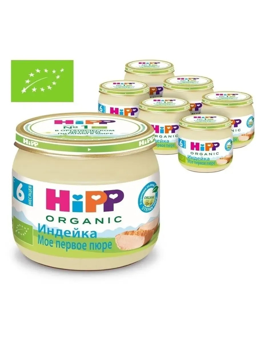 HIPP Пюре из Индейки с 6 мес 80г, 6 шт. HiPP гарантирует, что только лучшее от природы оказывается в наших баночках с детским питанием. Мы убеждены, что органическое - больше, чем просто натуральное, ведь при органическом производстве, животные выращиваются с заботой и с учетом особенностей пород. Наши индейки питаются только качественными органическими кормами и растут в естественном ритме, проводя много времени на открытом воздухе на обширных пастбищах. Мясо индейки обладает нежным и сочным вкусом. Оно богато белками, витаминами и минералами, а также является отличным источником фосфора и калия. Железо из мяса индейки легко усваивается, что является прекрасной профилактикой железодефицитной анемии у детей. Содержание нерастворимых жиров и холестерина в индейке достаточно низкое, благодаря чему оно легко переваривается. Это очень важно для маленьких детей, у которых пищеварительная система еще несовершенна. Вот уже свыше 60 лет мы производим органические продукты.
