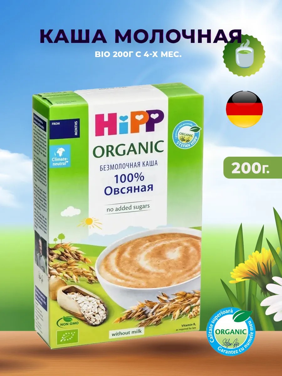 каша безмолочная овсяная bio 200 г (с 4 месяцев, hipp) — органическая овсяная каша без молока, предназначенная для малышей с 4 месяцев. идеально подходит для введения прикорма, обеспечивая ребёнка необходимыми питательными веществами для здорового роста и развития.