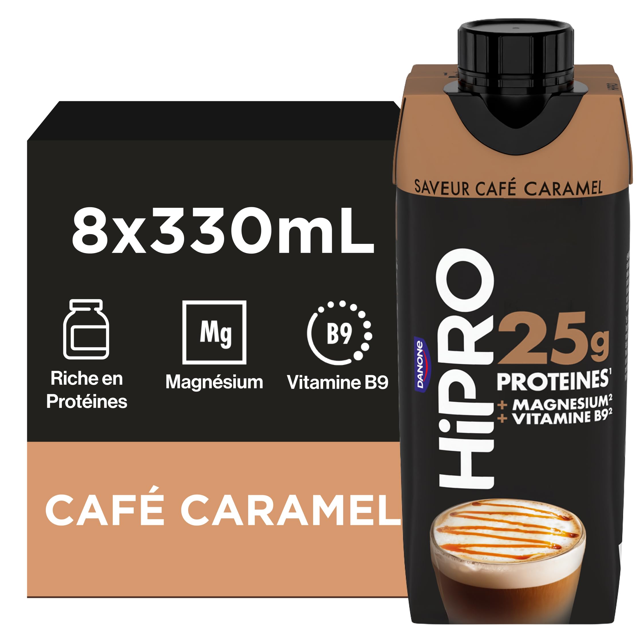 As an official partner of the 2024 Olympic Games and a sports nutrition expert, HiPRO supports athletes by offering products tailored to their specific nutritional needs to help them perform and achieve their goals! Rich in protein and low in fat, HiPRO products are also, and above all, rich in taste! Ingredients: Skimmed milk, milk proteins, coffee extract (0.4 ), thickeners (gellan gum, cellulose gum), stabilizers (polyphosphates, sodium phosphates), lactase, flavorings, sweetener (sucralose), salt. Instructions for use: store between 1 C and 6 C maximum. Safety warning: store between 1 C and 6 C maximum. See moreCONVENIENT FORMAT: Enjoy it wherever and whenever you want. Our UHT drinks are easy to take anywhere and can be stored at room temperature (or in the fridge if you prefer). LACTOSE-FREE: Our Hipro protein drinks are lactose-free. FAT-FREE: Our protein drink contains 0 fat and has a Nutri-Score of A. HIGH IN PROTEIN: 25g of protein and 5g of BCAAs per 330ml serving. Hipro drinkable protein contributes to the maintenance of muscle mass. Branched-chain amino acids, essential amino acids found in protein. HiPRO DRINK: HiPRO drinkable is your new sports ally. Designed for athletes and with a delicious taste, its convenient format, similar to a drinkable yogurt, can be taken anywhere!Description du produit En tant que partenaire officiel des JO 2024 expert de la nutrition sportive, HiPRO accompagne les sportifs en proposant des produits adaptés à leurs besoins nutritionnels spécifiques pour les aider à performer et atteindre leurs propres objectifs ! Riches en protéines et faibles en matières grasses, les produits HiPRO sont aussi et surtout riches en goût ! Ingrédients LAIT écrémé, protéines de LAIT, extrait de café (0,4 ), épaississants (gomme gellane, gomme de cellulose), stabilisants (polyphosphates, phosphates de sodium), lactase, arômes, édulcorant (sucralose), sel. P.when('A').execute(function(A) { A.on('a:expander:toggle_description:toggle:collapse', function(data) { window.scroll(0, data.expander. expander[0].offsetTop-100) }) }) Mode d'emploi A conserver entre 1 C et 6 C maximum Avertissement De Sûreté A conserver entre 1 C et 6 C maximum Voir plusFORMAT PRATIQUE : A consommer ou et quand vous voulez, nos UHT peuvent s'emporter partour et se conserver hors du frigo (et au frigo si vous le désirez). SANS LACTOSE : Nos boissons protéinées Hipro ne contiennent pas de lactose. SANS MATIERES GRASSES : Notre boisson protéinée contient 0 de matières grasses et un nutri-score A. RICHE EN PROTEINES : 25g de protéines et 5g de BCAA par portion de 330ml. Les protéines d'Hipro à boire contribuent au maintien de la masse musculaire. Acides aminés à chaîne ramifiée, des acides aminées essentiels présents dans les protéines. BOISSON HiPRO : HiPRO à boire est votre nouvel allié pour le sport. Conçu pour les sportifs et au goût delicieux, son format aussi pratique qu'un yaourt à boire, peut s'emporter partout !.Hipro - Boisson protéinée goût caramel café - 330ml - Lot de 8x330ml