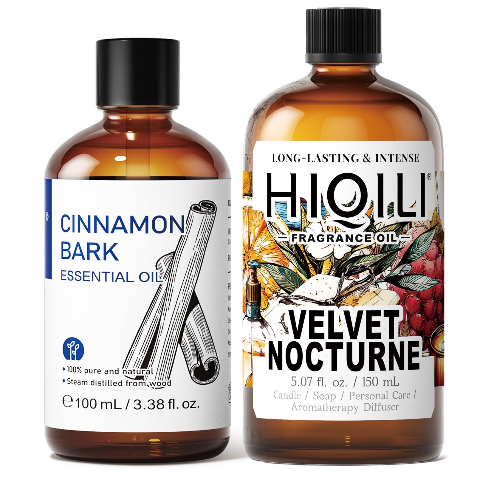 HIQILI 100ML Cinnamon Essential Oil & 150ML Velvet Nocturne Fragrance Oil for DIY Diffuser