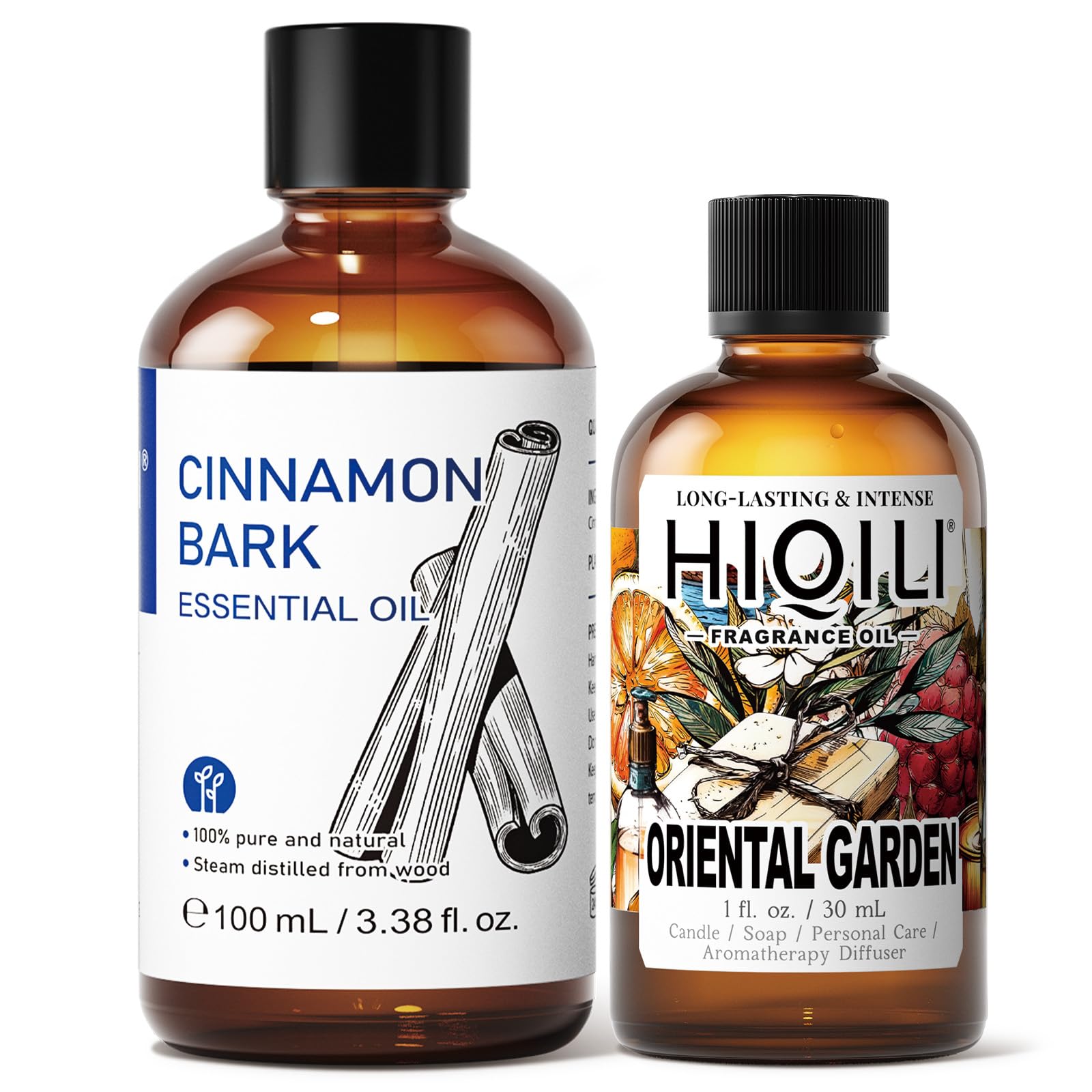 HIQILI 100ML Cinnamon Essential Oil & 30ML Oriental Garden Fragrance Oil for DIY Diffuser