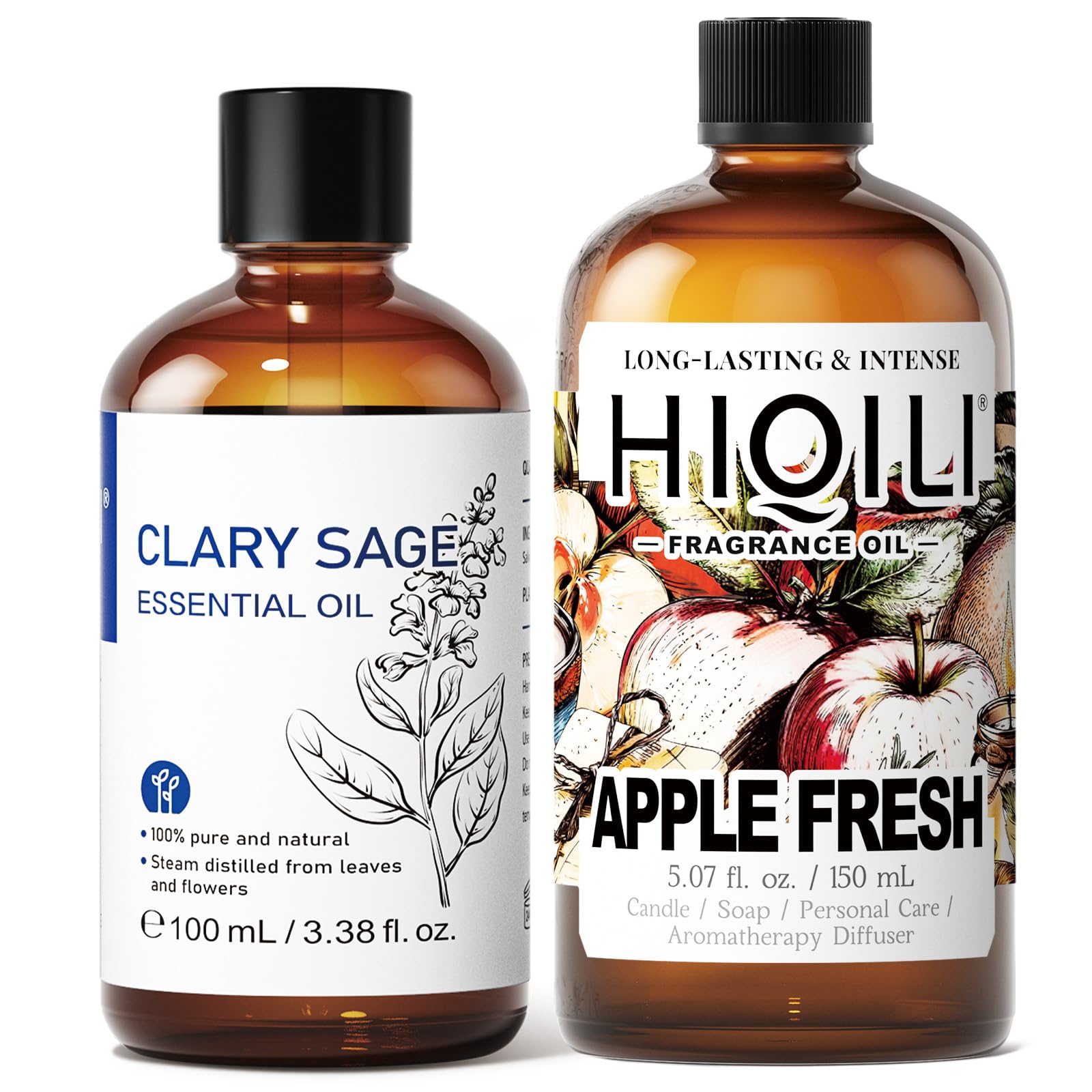 HIQILI 100ML Clary Sage Essential Oil & 150ML Apple Fresh Fragrance Oil for DIY Diffuser