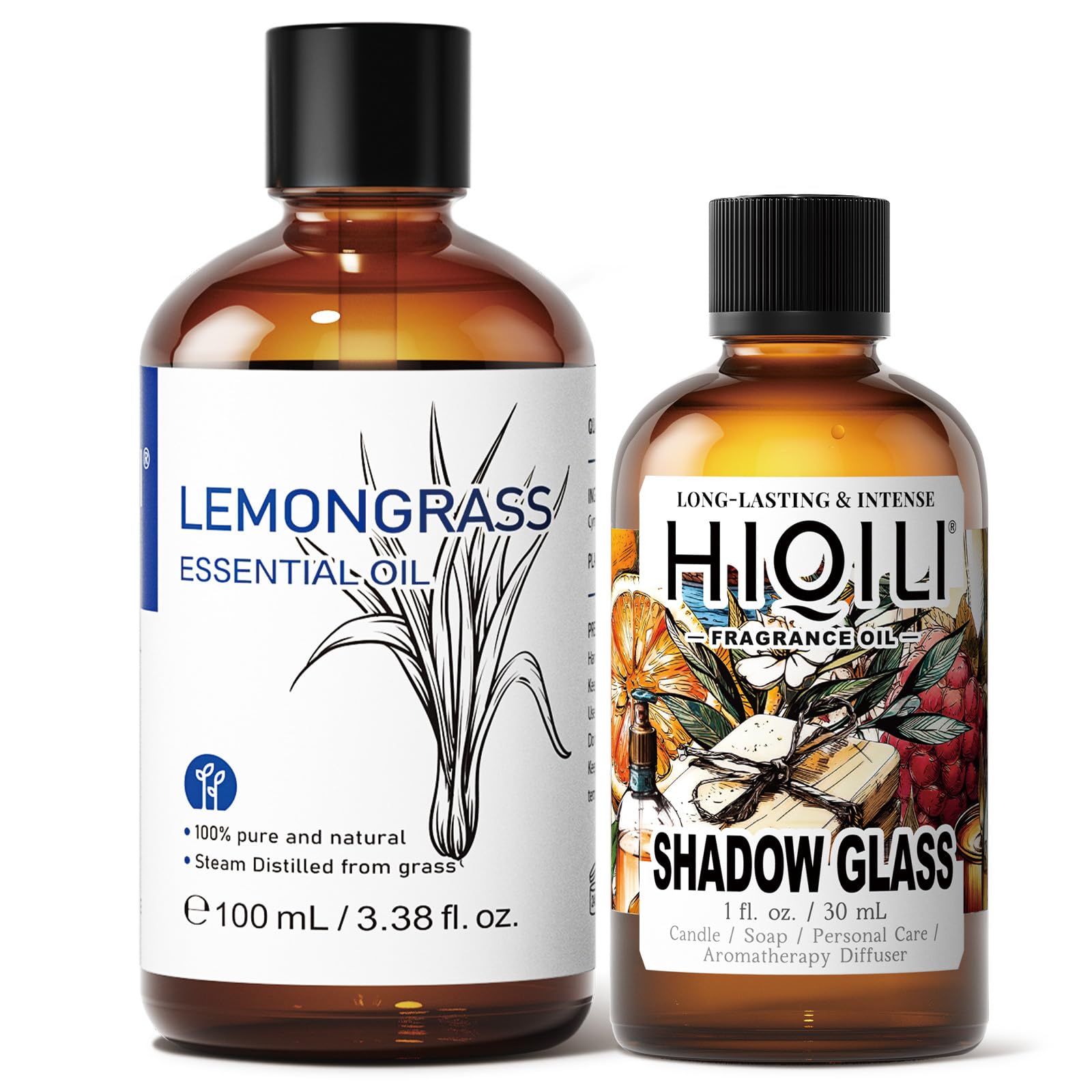 HIQILI 100ML Lemongrass Essential Oil & 30ML Shadow Glass Fragrance Oil for DIY Diffuser