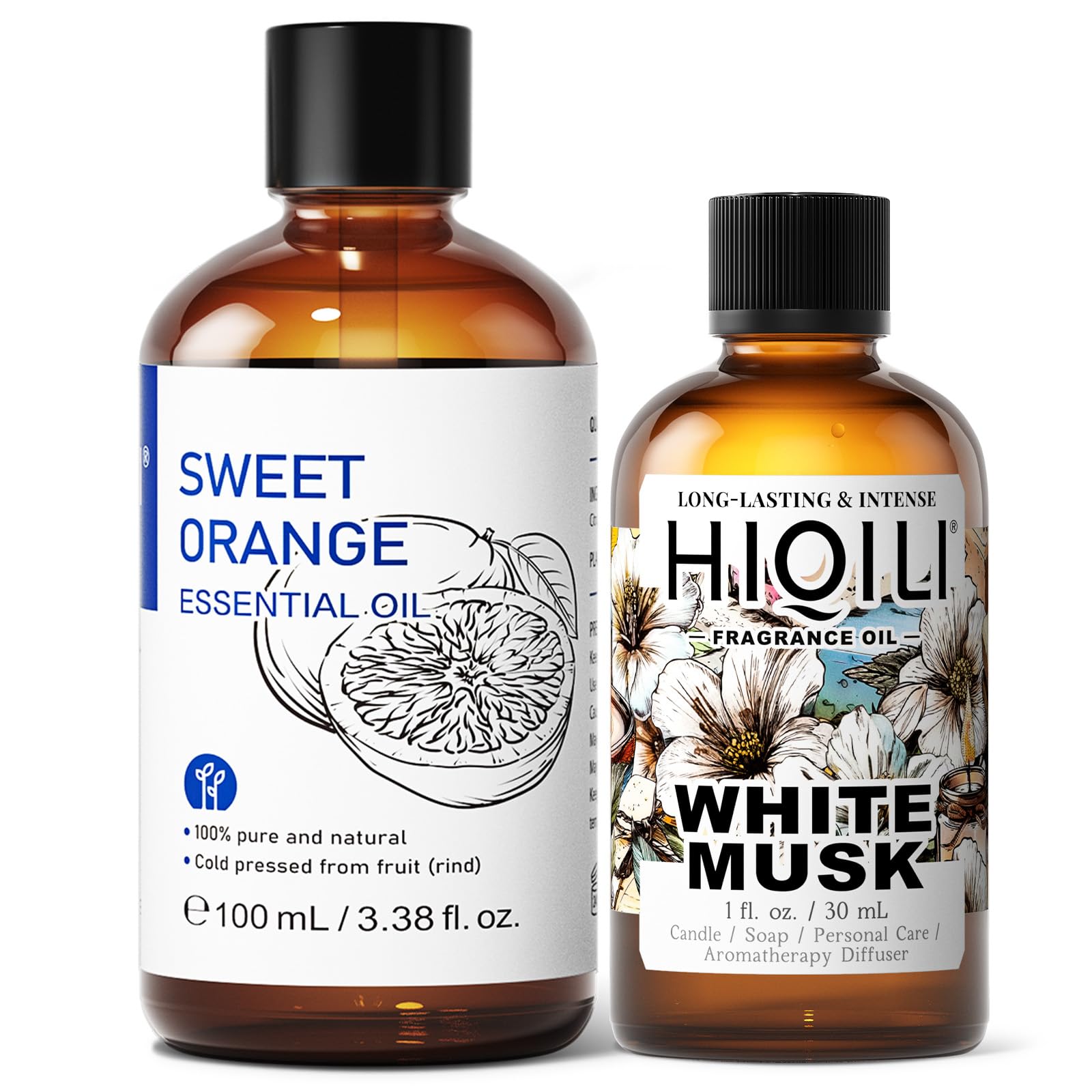 HIQILI 100ML Orange Essential Oil & 30ML White Musk Fragrance Oil for DIY Diffuser