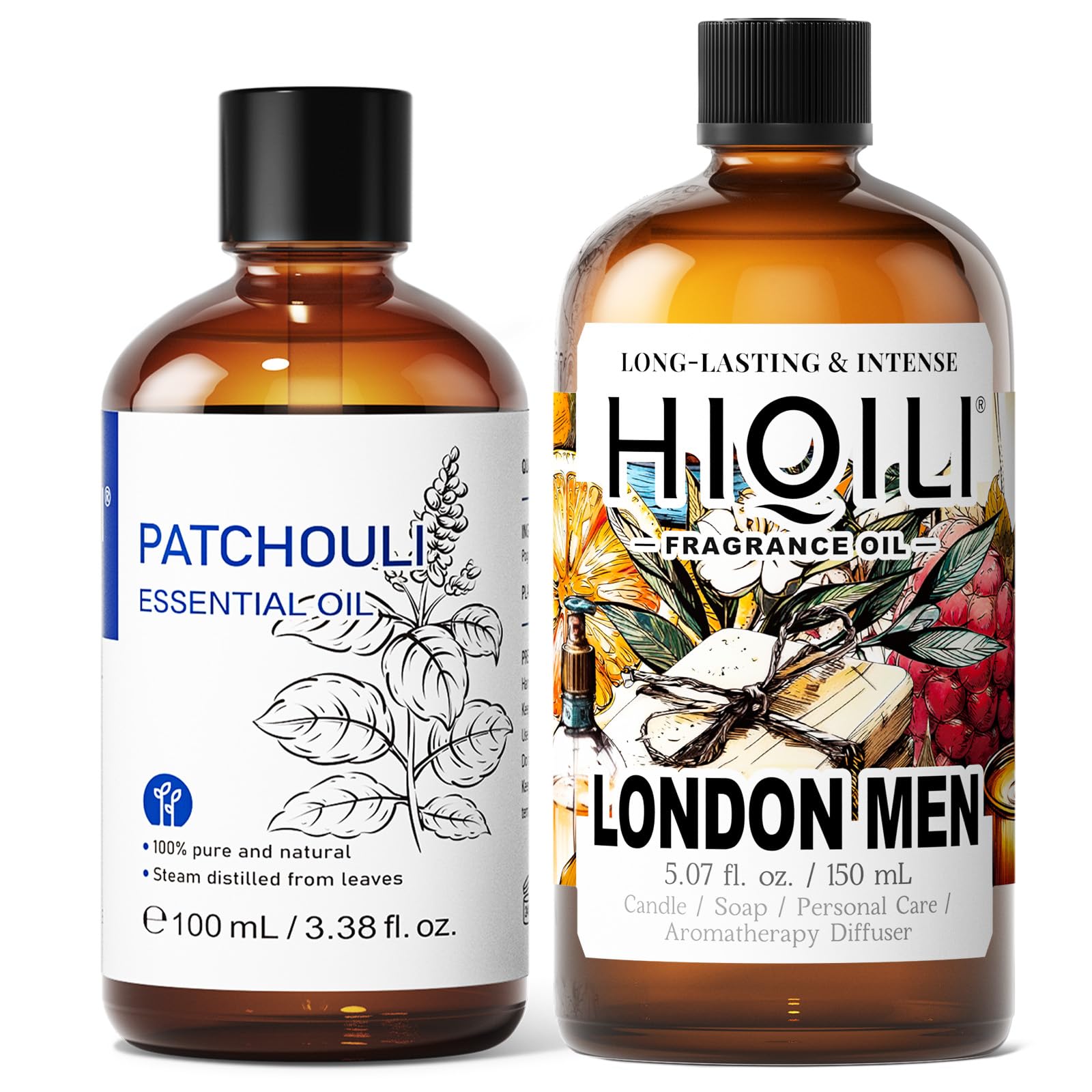 HIQILI 100ML Patchouli Essential Oil & 150ML London Men Fragrance Oil for DIY Diffuser