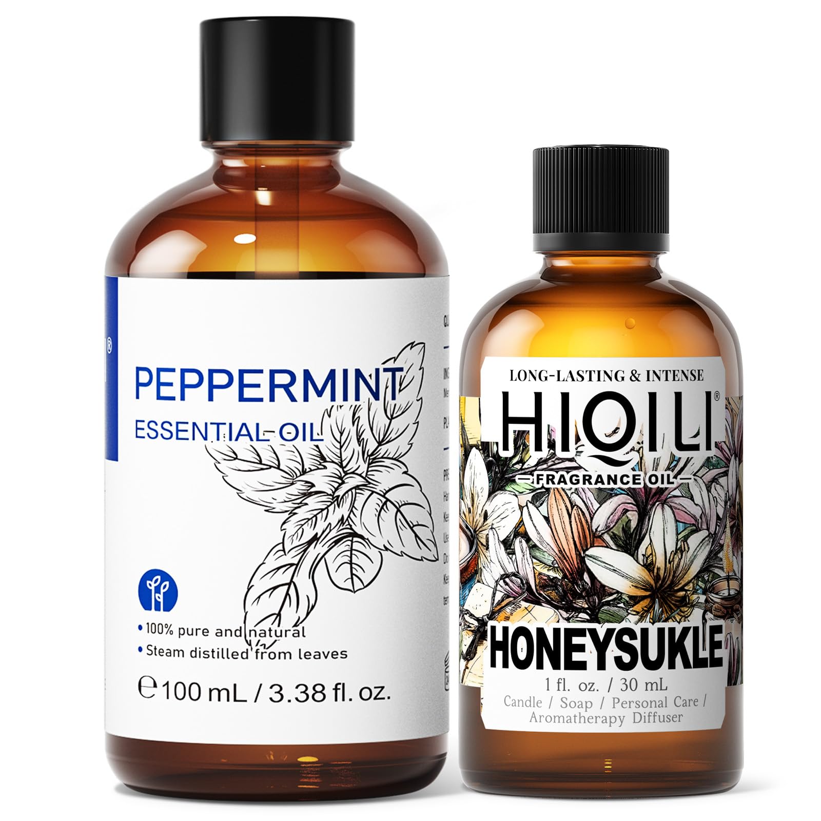 HIQILI 100ML Peppermint Essential Oil & 30ML Honeysuckle Fragrance Oil for DIY Diffuser