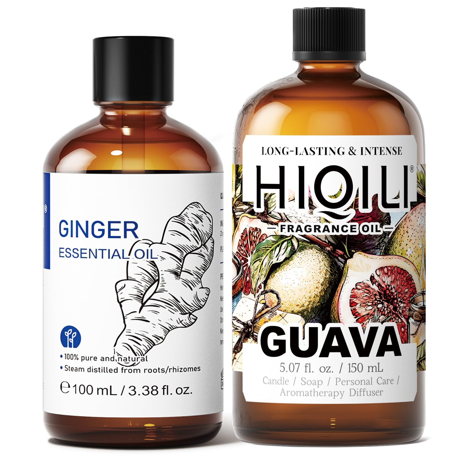 HIQILI 100ML Pure Ginger Essential Oil & 150ML Guava Fragrance Oil for DIY Diffuser