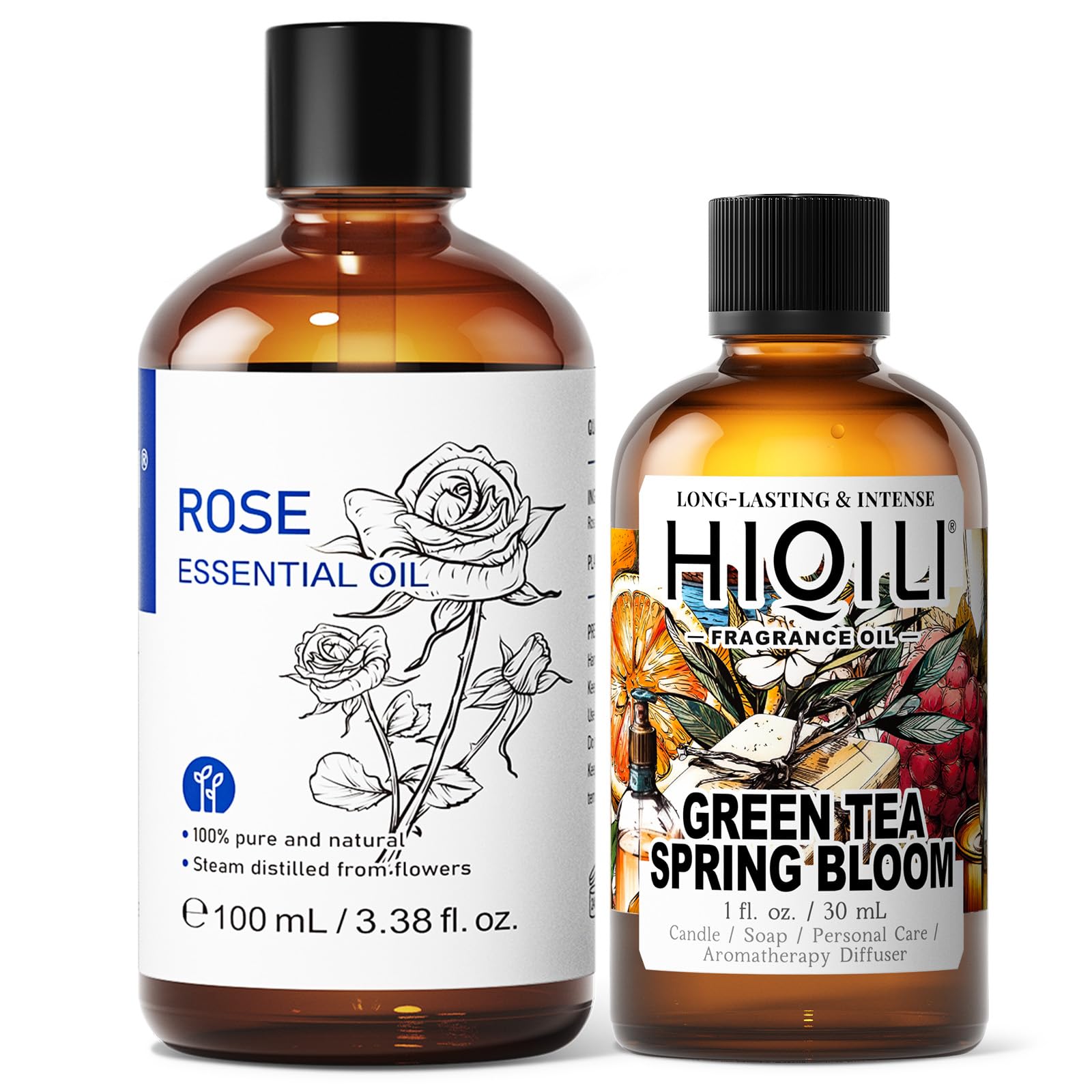 HIQILI 100ML Rose Essential Oil & 30ML Green Tea Spring Bloom Fragrance Oil for DIY Diffuser