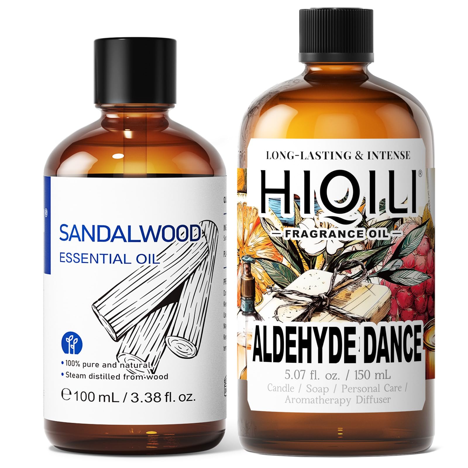HIQILI 100ML Sandalwood Essential Oil & 150ML Aldehyde Dance Fragrance Oil for DIY Diffuser