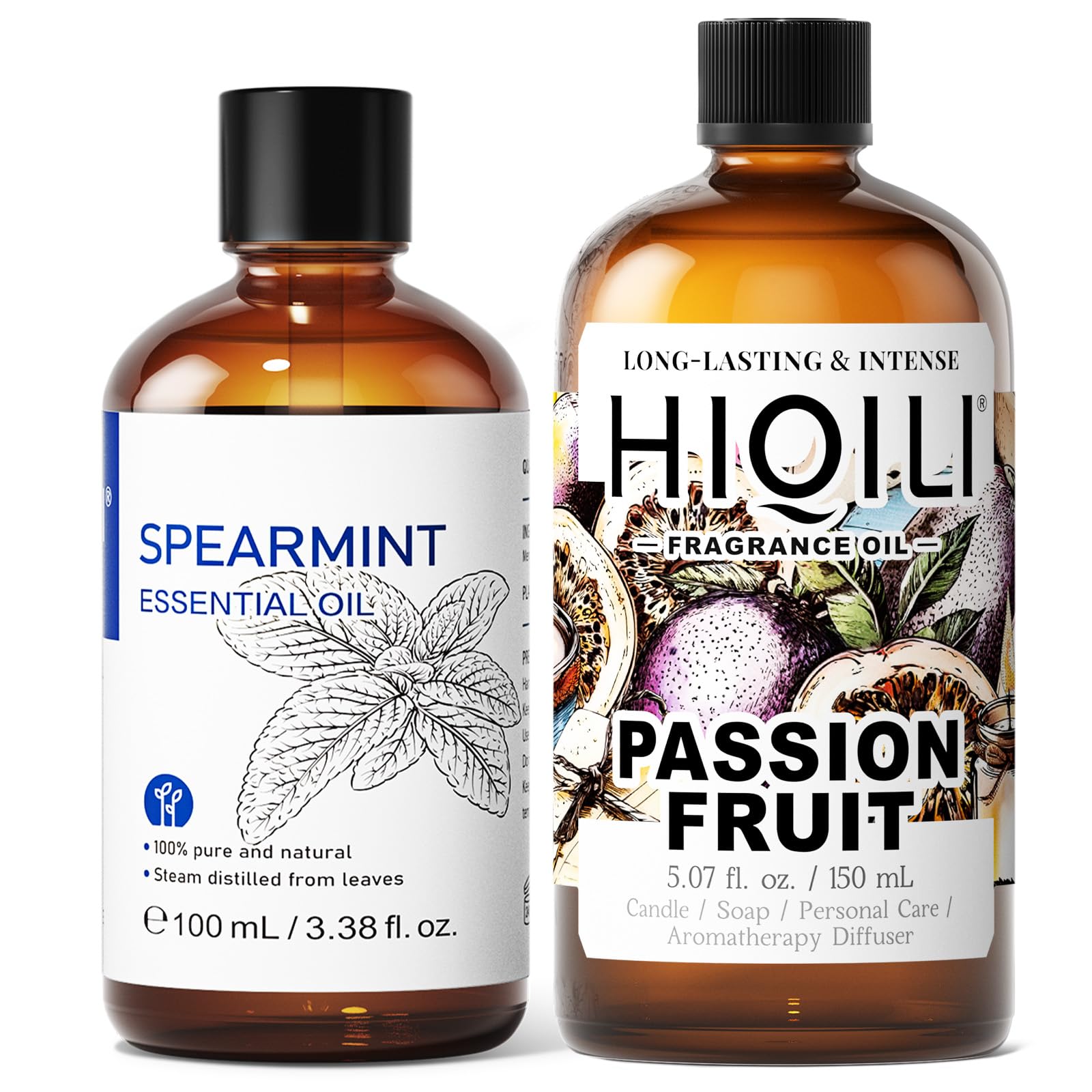 HIQILI 100ML Spearmint Essential Oil & 150ML Passion Fruit Fragrance Oil for DIY Diffuser