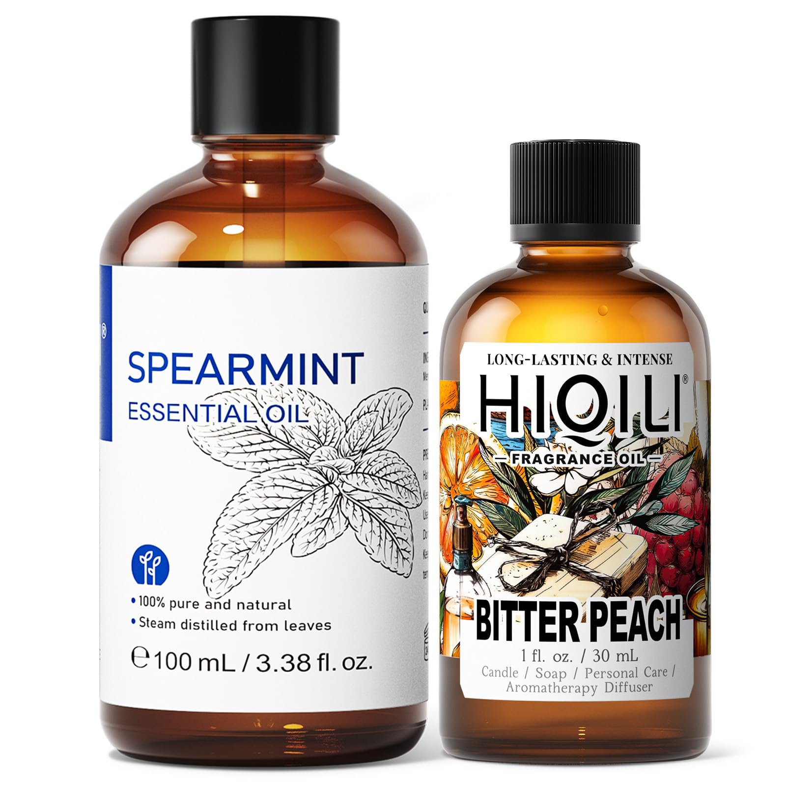 HIQILI 100ML Spearmint Essential Oil & 30ML Bitter Peach Fragrance Oil for DIY Diffuser