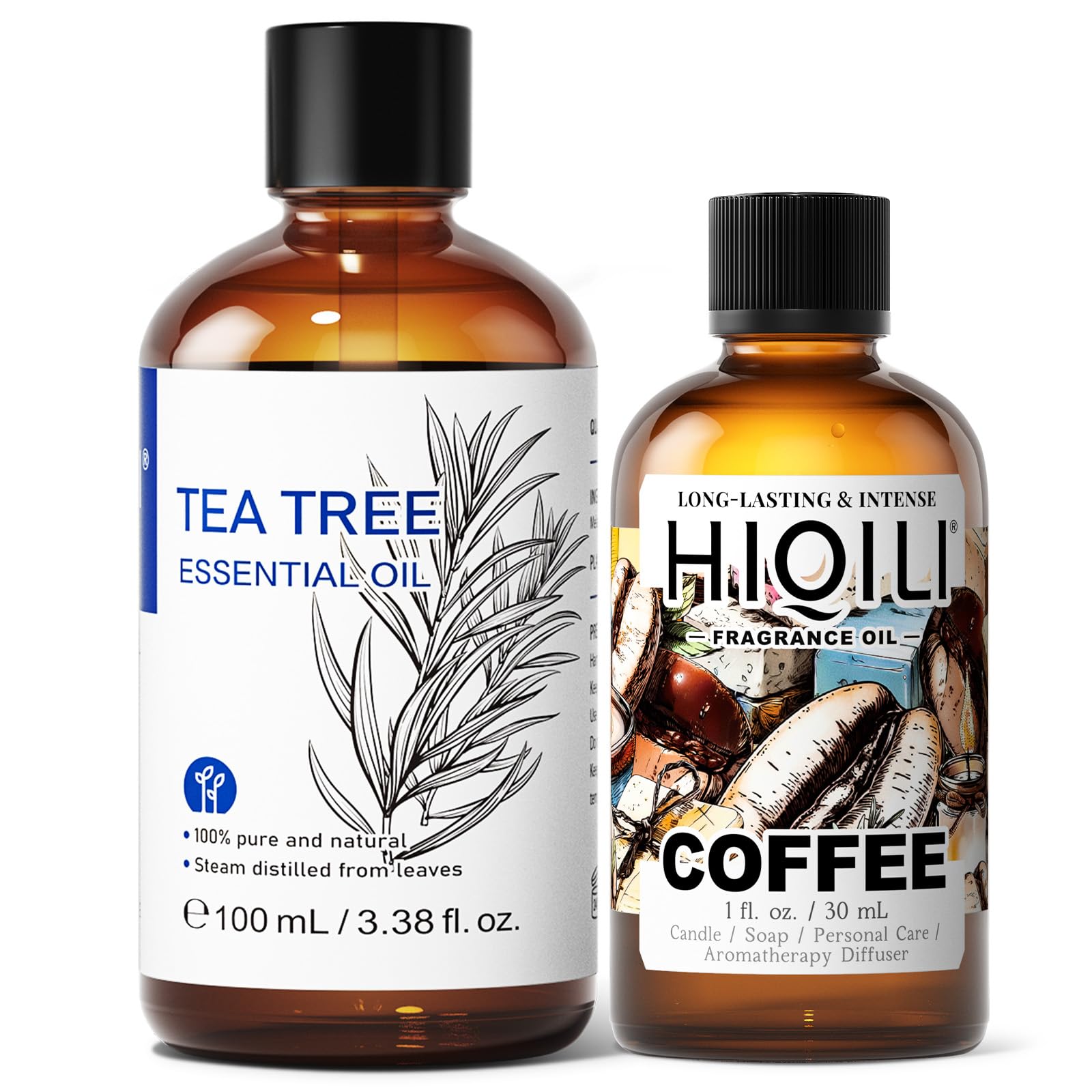 HIQILI 100ML Tea Tree Essential Oil & 30ML Coffee Fragrance Oil for DIY Diffuser