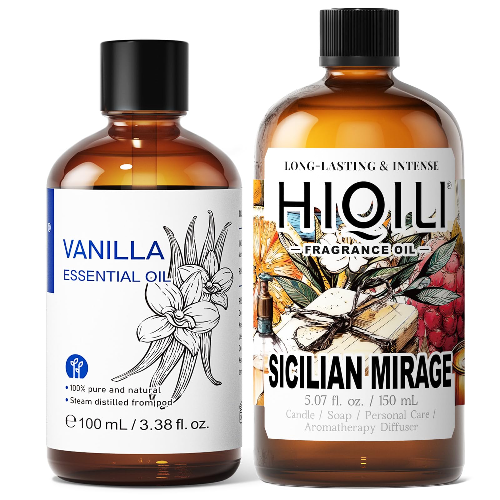 HIQILI 100ML Vanilla Essential Oil & 150ML Sicilian Mirage Fragrance Oil for DIY Diffuser
