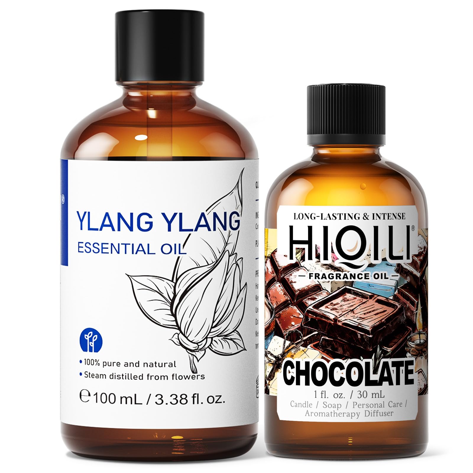 HIQILI 100ML Ylang-Ylang Essential Oil & 30ML Chocolate Fragrance Oil for DIY Diffuser