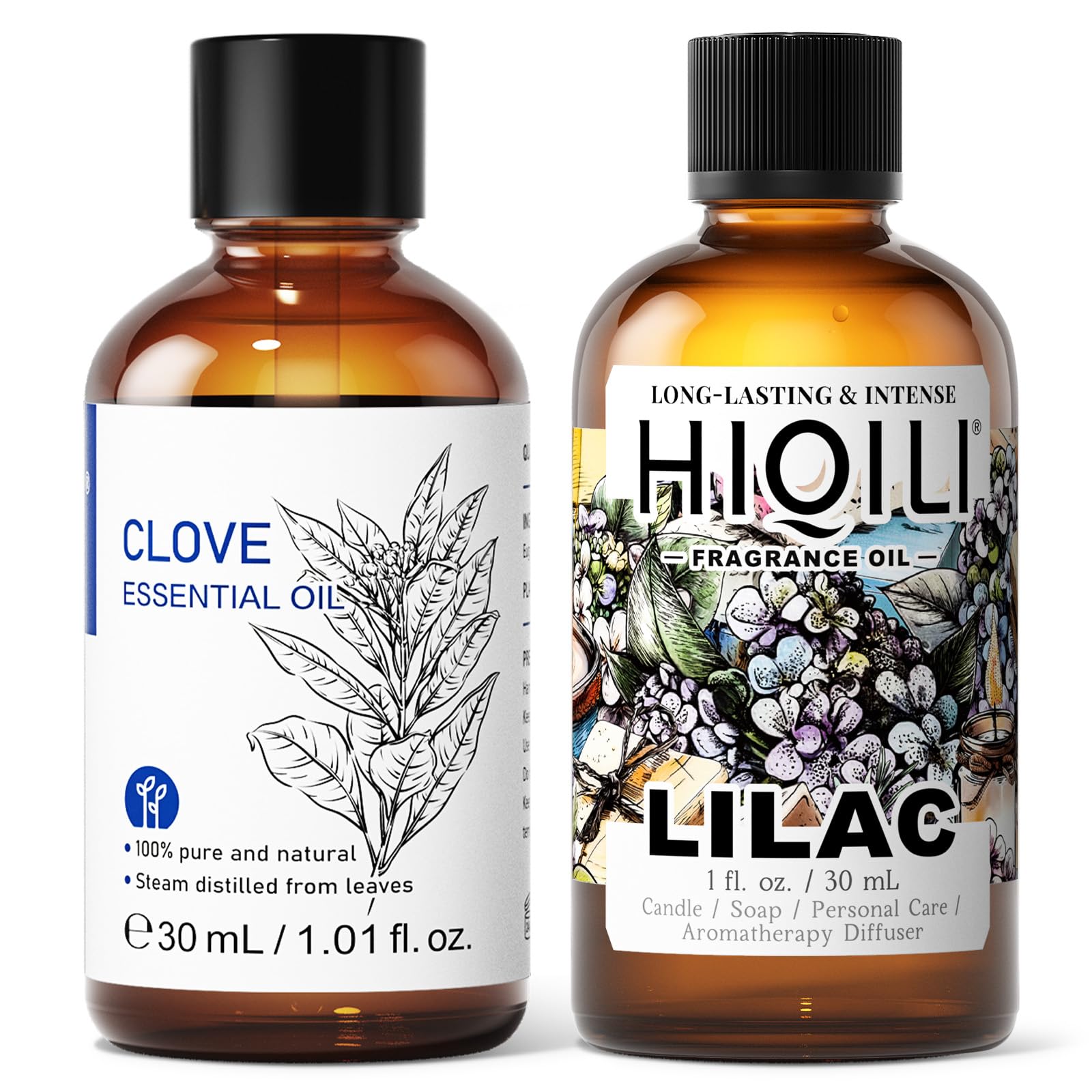 HIQILI 30ML Clove Essential Oil & 30ML Lilac Fragrance Oil for DIY Diffuser