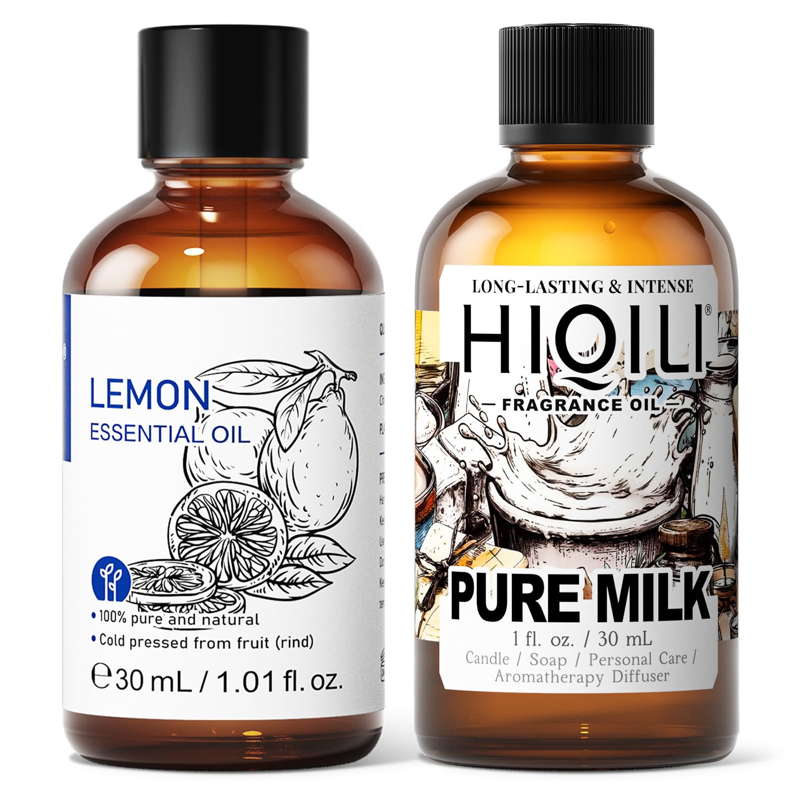 HIQILI 30ML Lemon Essential Oil & 30ML Pure Milk Fragrance Oil for DIY Diffuser