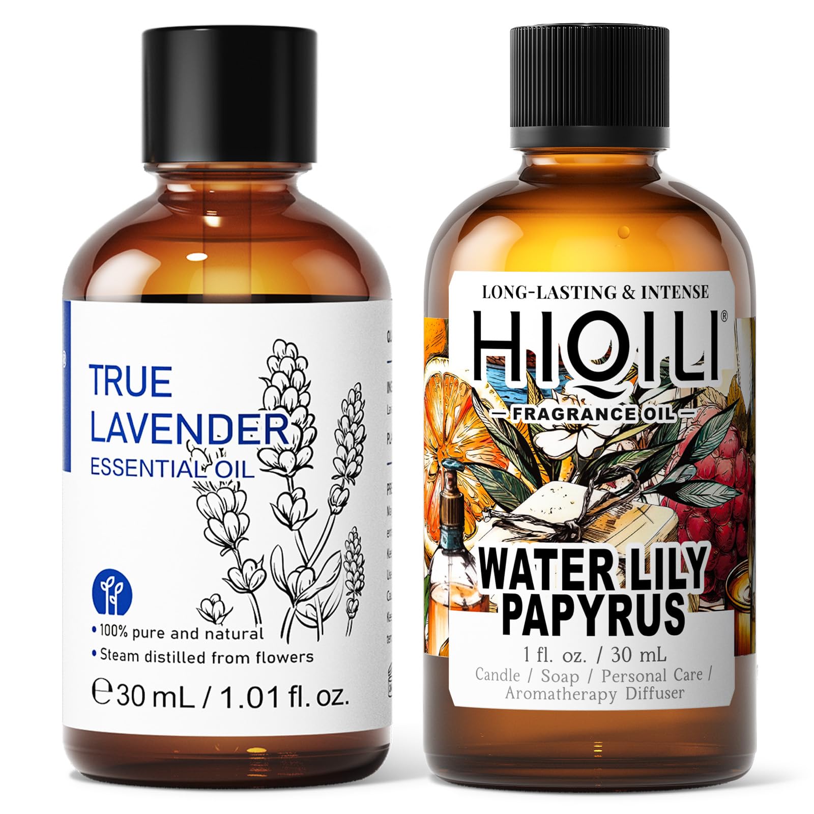 HIQILI 30ML True Lavender Essential Oil & 30ML Water Lily Papyrus Fragrance Oil for DIY Diffuser