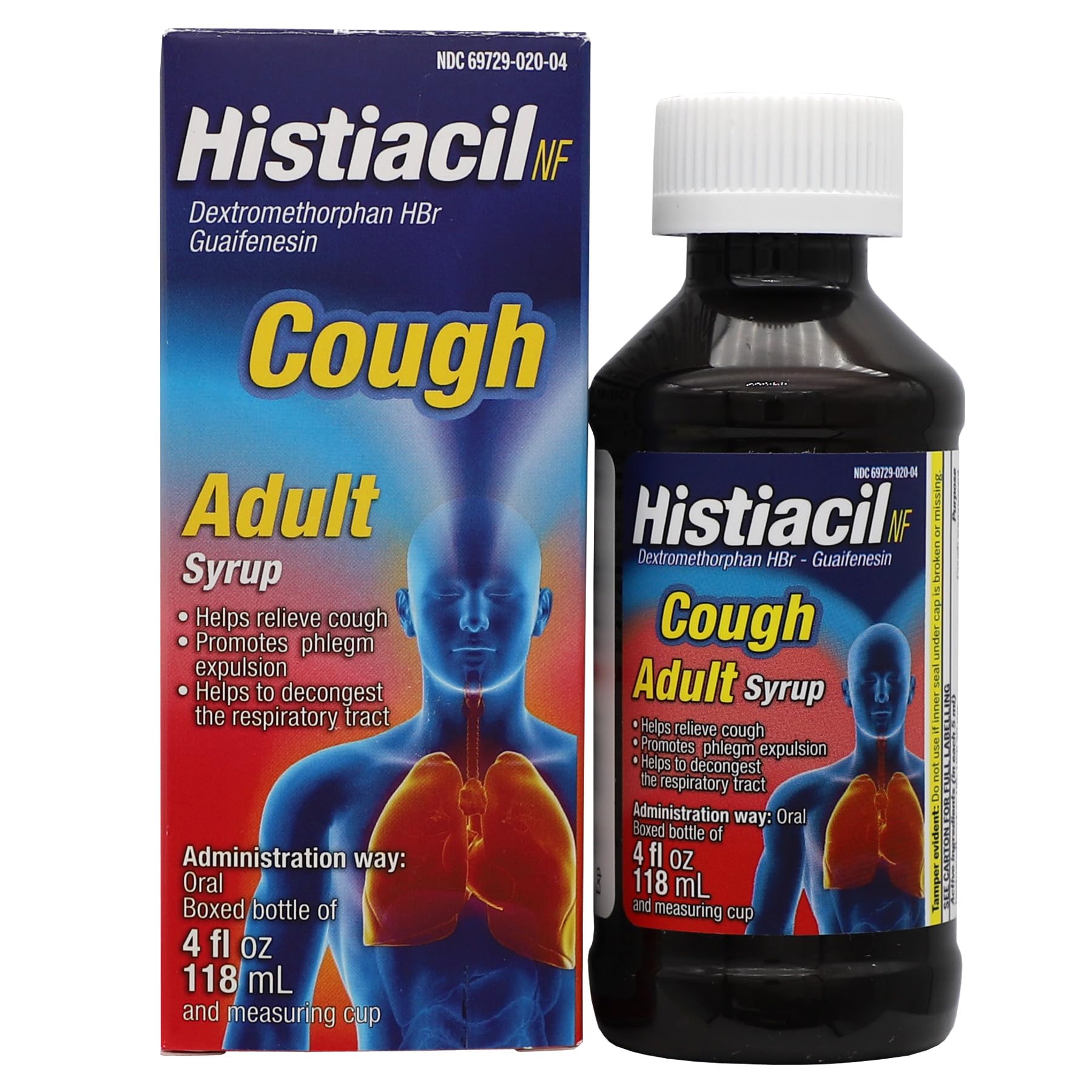 Histiacil Adult 4 fl oz (118 ml) is a fast-acting cough relief syrup formulated to help soothe irritated throats and ease persistent cough symptoms. Designed for adults, its calming formula helps reduce the urge to cough, making it easier to rest and recover. Ideal for use during cold, flu, or allergy-related coughs, Histiacil provides reliable support to help you feel better throughout the day or night.