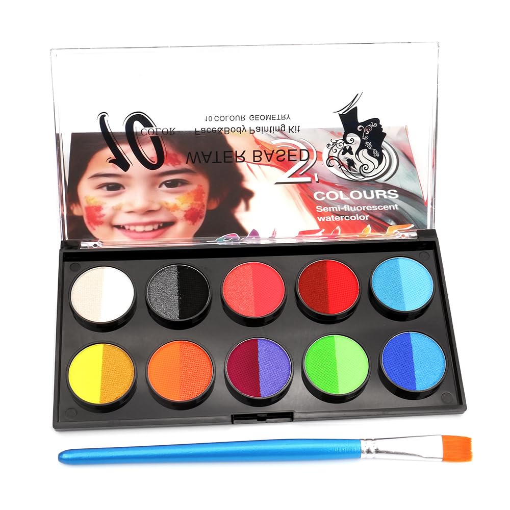 HISUNBEN Body Paint - 30g - Washable - For Face and Children - Face Makeup - For Theater - Carnival - Halloween - Party SAFETY WARNING NoVERSATILE USE: Perfect for Halloween, holiday makeup, school, church, carnival, birthday parties, cosplay, army camouflage, baby pool, and soccer. Easy to clean: Simply apply to the face and body with a makeup sponge or brush and water. Cleans easily with soap and water. As with all cosmetic products, we recommend doing a small patch test before using it on your face, as everyone's skin reacts differently. BRILLIANT COLORS: Contains the strongest pigmentation for exceptional opacity and vivid, eye-catching shades. Perfectly mixable with a little water and long-lasting all day without cracking or fading. Popular with kids: A water-based body paint loved by the most influential and demanding face artists and children worldwide. Individual 30g packet in a sturdy container with a screw-on lid. Skin-friendly material: safe and gentle on the skin with excellent cosmetic quality. Cruelty-free, natural, vegan, fragrance-free, non-toxic, and gluten-free.HISUNBEN Peinture pour le corps - 30 g - Lavable - Pour le visage et les enfants - Maquillage pour le visage - Pour le théâtre - Carnaval - Halloween - Fête 10DESCRIPTION DU PRODUIT DESCRIPTION DU PRODUIT HISUNBEN Peinture pour le corps - 30 g - Lavable - Pour le visage et les enfants - Maquillage pour le visage - Pour le théâtre - Carnaval - Halloween - Fête 10 AVERTISSEMENT DE SÉCURITÉ NonUTILISATION POLYVALENTE : parfait pour Halloween, le maquillage de vacances, l'école, l'église, le carnaval, les fêtes d'anniversaire, le cosplay, le camouflage de l'armée, la piscine pour bébé et le football. Facile à nettoyer : il suffit de l'appliquer sur le visage et le corps avec une éponge ou un pinceau de maquillage et de l'eau. Le nettoyage se fait facilement avec du savon et de l'eau. Comme avec tous les produits cosmétiques, nous vous recommandons de faire un petit test cutané avant de l'utiliser sur le visage, car chaque peau réagit différemment. COULEURS BRILLANTES : contient la pigmentation la plus forte pour une opacité exceptionnelle et des teintes vives et accrocheuses. Parfaitement miscible avec un peu d'eau et durable toute la journée sans se fissurer ni se décolorer. Populaire auprès des enfants : une peinture corporelle à base d'eau appréciée par les artistes du visage les plus influents et exigeants ainsi que les enfants du monde entier. Paquet individuel de 30 g dans un récipient robuste avec couvercle à visser. Matériau doux pour la peau : sûr et doux pour la peau avec une très bonne qualité cosmétique. Sans cruauté, naturel, végétalien, sans parfum, non toxique et sans gluten.