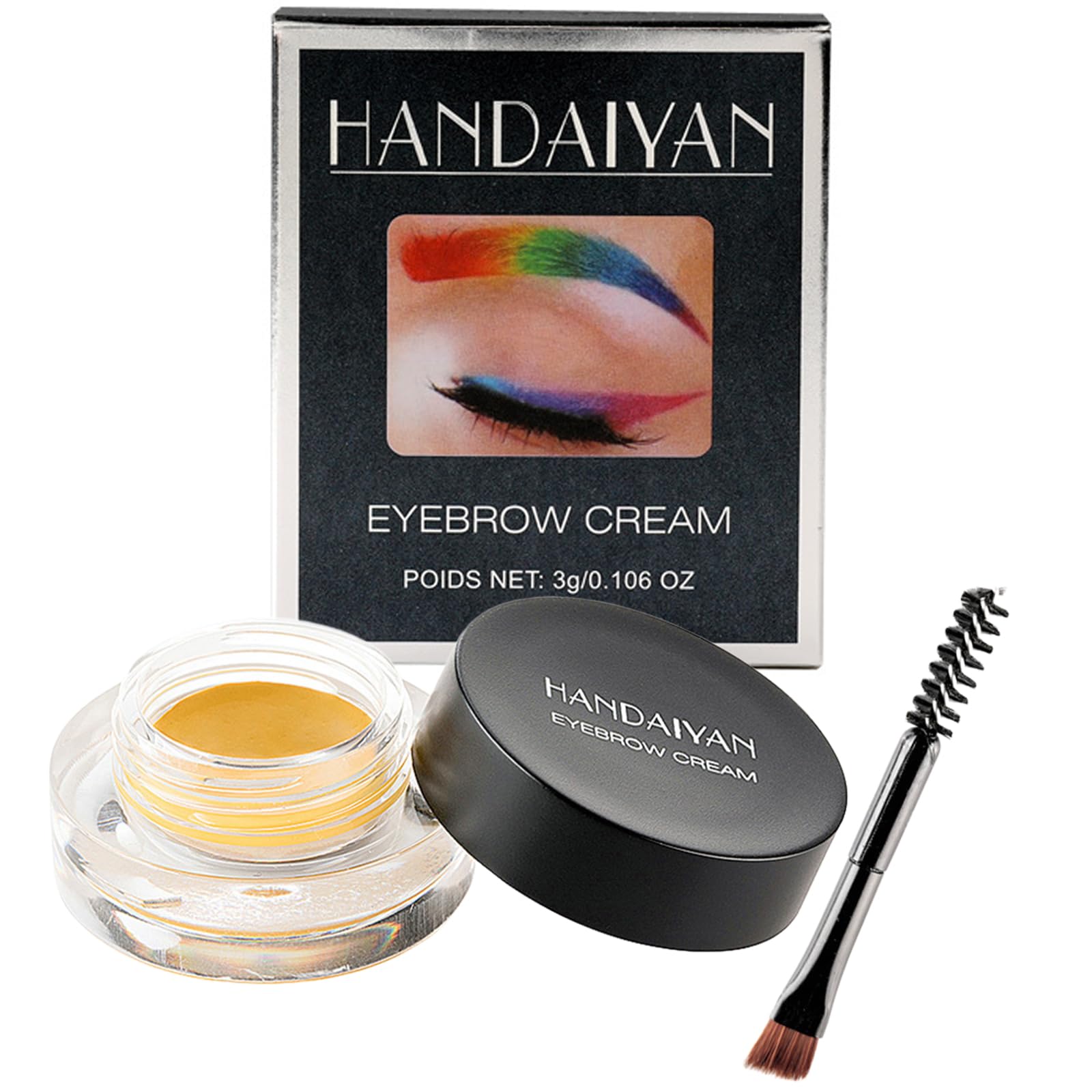 Easy to remove: the skin-friendly formula can be removed without residue with oily make-up remover. The dermatologically tested formula guarantees gentle care with easy handling and gentle cleaning. Color variety for professional applications: The range offers versatile color nuances for harmonious coordination with any make-up look. Particularly suitable for professional use in the beauty sector due to high pigmentation quality. Individual eyebrow shaping: With the cream, gaps can be accurately filled and natural eyebrow contours can be modeled. The customizable application technique allows you to create the perfect curve according to your face shape. Practical complete set: each make-up box contains a separate precision brush for eyebrows. The elegant packaging design combines compact dimensions with a premium feel, ideal for travel and luggage. 24-hour water protection formula: the waterproof eyebrow pomade guarantees impeccable hold for up to 24 hours. The innovative long-lasting formula protects your makeup from running off due to sweat, rain or water sports activities, without smudging or fading.Wenkbrauwpomade, waterdichte wenkbrauwgel, wenkbrauwpomade met kwast, duurzaam, voor dichte en natuurlijk uitziende wenkbrauwen, geelEenvoudig te verwijderen: de huidvriendelijke formule kan zonder resten met oliehoudende make-upverwijderaar worden verwijderd. De dermatologisch geteste formule garandeert een zachte verzorging bij eenvoudige bediening en zachte reiniging. Kleurverscheidenheid voor professionele toepassingen: het assortiment biedt veelzijdige kleurnuances voor harmonieuze afstemming met elke make-up-look. Bijzonder geschikt voor professioneel gebruik in de beauty-sector door hoge pigmentatiekwaliteit. Individuele wenkbrauwvormgeving: met de crème kunnen openingen nauwkeurig worden opgevuld en natuurlijke wenkbrauwcontouren worden gemodelleerd. Door de aanpasbare applicatietechniek kun je de perfecte welving creëren volgens je gezichtsvorm. Praktische complete set: elke make-upbox bevat een aparte precisiekwast voor wenkbrauwen. Het elegante verpakkingsontwerp combineert compacte afmetingen met een hoogwaardig gevoel, ideaal voor onderweg en bagage. 24-uurs waterbeschermingsformule: de waterdichte wenkbrauwpomade garandeert tot 24 uur onberispelijke grip. De innovatieve langdurige formule beschermt je make-up tegen weglopen door zweet, regen of watersportactiviteiten, zonder daarbij te vlekken of te vervagen.