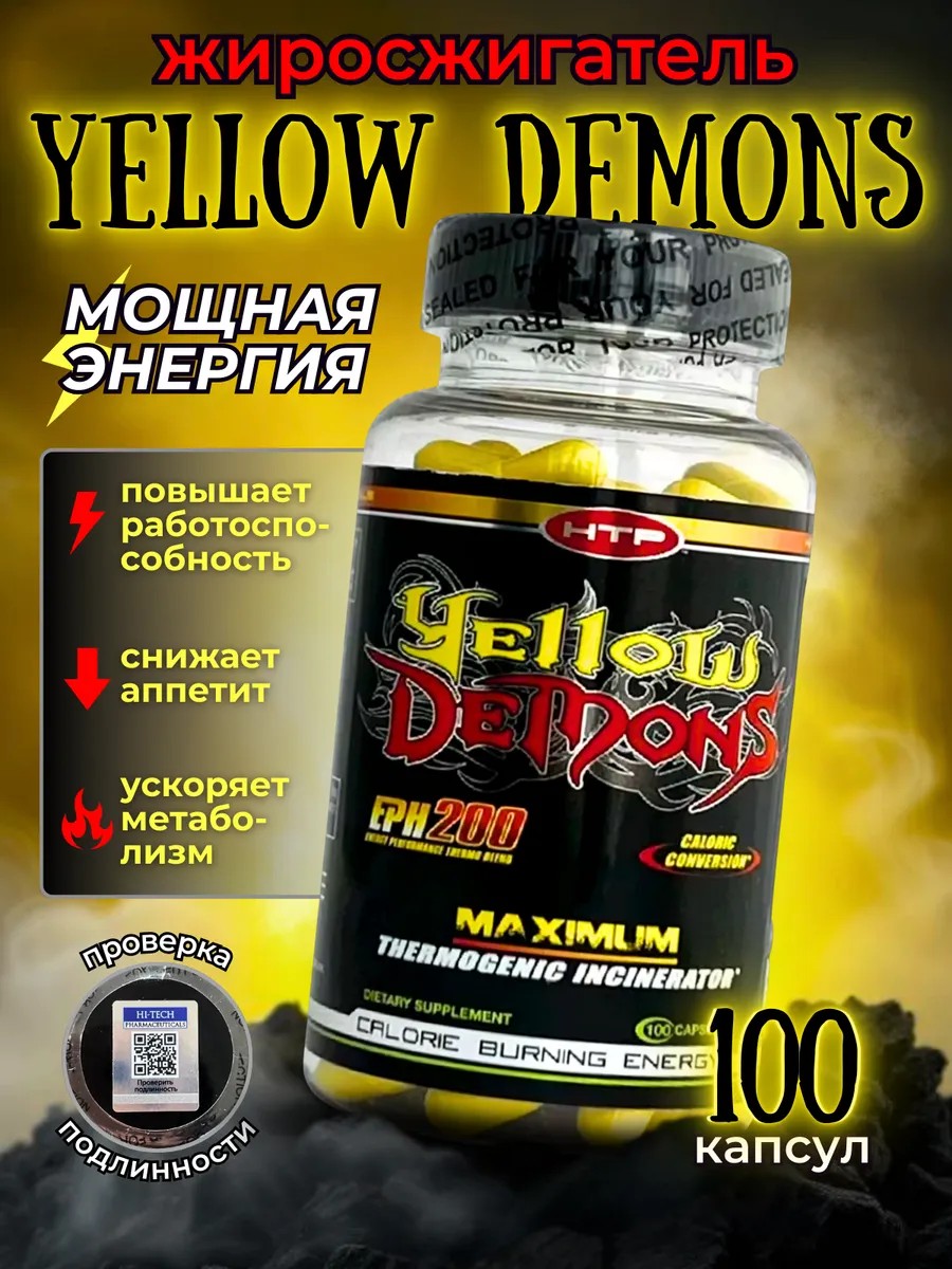 Yellow Demons от Hi-Tech Pharmaceuticals – мощный жиросжигатель на основе самой рабочей смеси, которая используется только в лучших и проверенных жиросжигателях. В состав желтого демона входит EPH-THERMOBLEND (Bland Extract) - запатентованная синергетическая матрица нейростимулирующих агентов, по своему действию близких к аналогу всем известной «ЭКА», которая содержится во многих известных жиросжигателях.