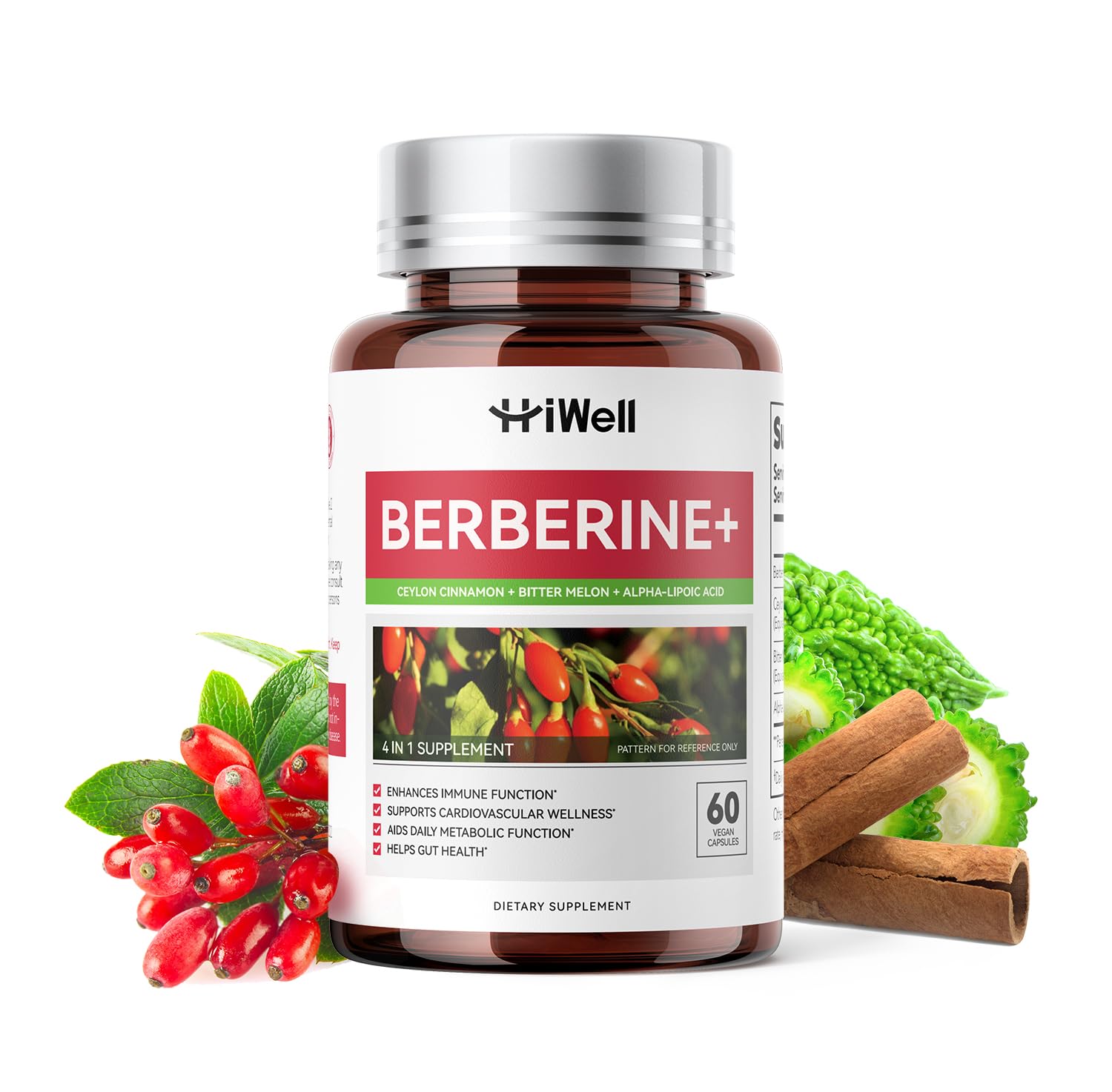 HiWell Berberine with Ceylon Cinnamon, Support Blood Sugar, Cholesterol Health & Immune*, Gluten-Free, Non-GMO & Vegan Berberine Supplement, 60 Capsules