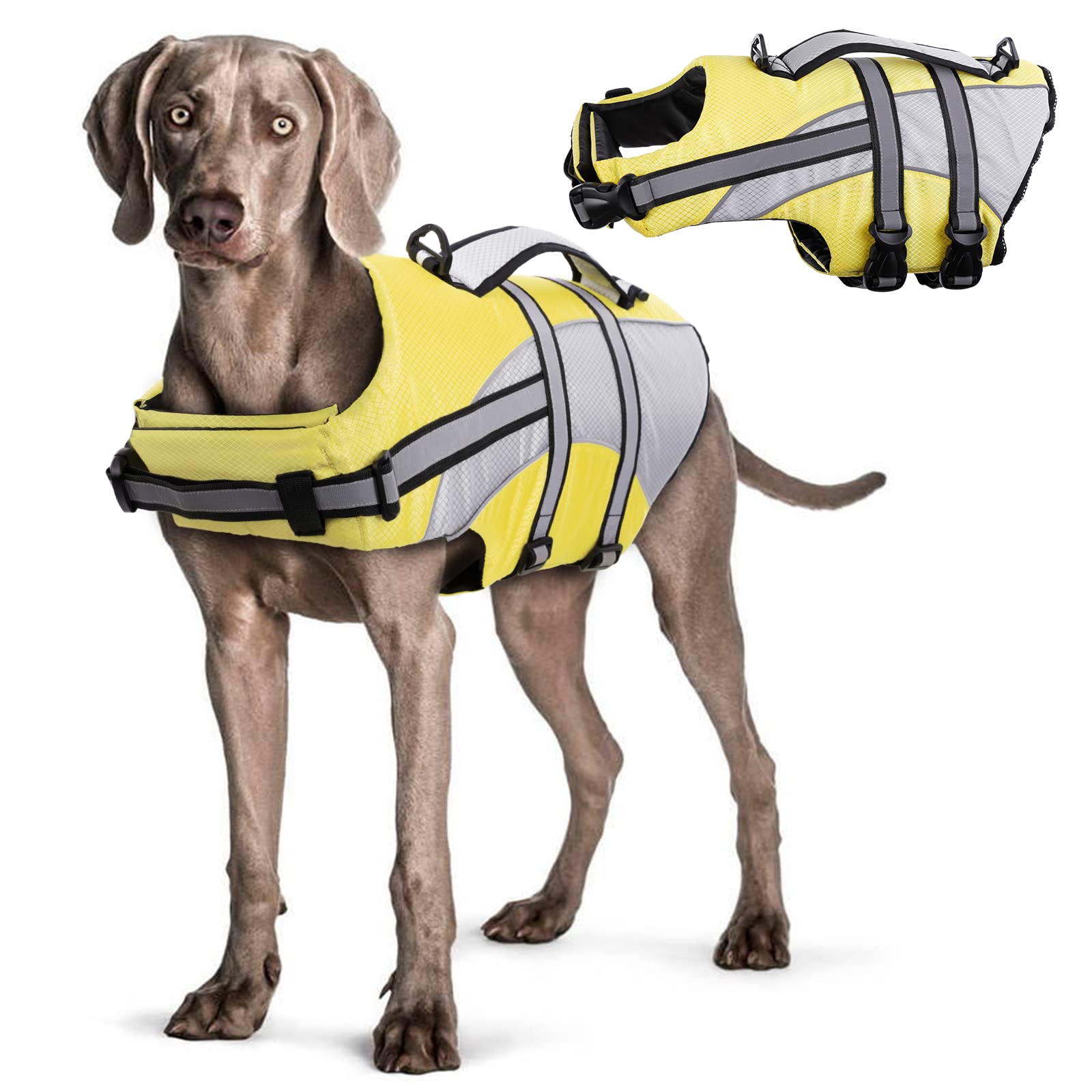 Rescue vest for dogs- suitable for almost all dog breedsThese lifeguards for pets are available in 6 sizes, from XS to XXL, for most dog sizes, from puppies to large breeds.Make sure to measure your pet and choose the size that corresponds to its size area to ensure that its new life jacket offers the right fit and the right buoyancy.Dog chimney- easy tight and off and adjustable fitOur swimming safety vest for dogs is equipped with 2 strong magic bands on the stomach and neck that can be easily put on and undress for dogs.The abdominal and neck band has adjustable straps with side buckles that help you give your puppy a comfortable fit and to ensure your safety.WEITIONS FOR THE DISCHEMEN RENSTIONS AND D-rings for linen attachmentWith a robust rescue handle at the top that can make it easier to pull a heavier or lively dog.We have designed a D-ring on this swimming jacket, you can attach a leash to give you more flexibility if you use the vest outside the water.With adjustable straps and quick closures on the neck and stomach, it offers security for your dog.Light color reflective stripThe must-have feature of a dog swimming vest is a bright color that helps your dog remain as visible as possible.The clearly visible reflective stripes on back, which can improve the visibility in the water or in poor lighting conditions, quickly let your dog find a glance and help your dog to stay visible in the water and to avoid collisions with boat drivers and jet skiers.WEITION DISCH-RipStop High Flotation MaterialThe HJYOKUSO Dog chest is with tear-resistant 600D-PU oxford fabric, a lot of thick padding and extra buoyancy (1.0 cm Epe pearl sponge 0.2 cm EVA foam) around belly andBreast designed around her safety of the dog in the water.Outside the water, the vest seemed comfortable and does not restrict the dog's movement.RETTUNGSWESTEN FÜR HUNDE- PASSEND FÜR FAST ALLE HUNDERASSENDiese Rettungswesten für Haustiere sind in 6 Größen erhältlich, von XS bis XXL, für die meisten Hundegrößen, vom Welpen bis zu großen Rassen. Achten Sie darauf, Ihr Haustier zu messen und die Größe zu wählen, die seinem Größenbereich entspricht, um sicherzustellen, dass seine neue Schwimmweste die richtige Passform und den richtigen Auftrieb bietet. HUNDESCHWIMMWESTE- EINFACHES AN- UND AUSZIEHEN UND EINSTELLBARE PASSFORMUnsere Schwimmsicherheitsweste für Hunde ist mit 2 starken Zauberbändern an Bauch und Hals ausgestattet, die sich für Hunde leicht an- und ausziehen lassen. Das Bauch- und Nackenband verfügt über verstellbare Träger mit seitlichen Schnallen, die Ihnen helfen, Ihrem Welpen einen bequemen Sitz zu geben und seine Sicherheit zu gewährleisten. SCHWIMMWESTEN FÜR HUNDE- LANGLEBIGE RETTUNGSGRIFFE UND D-RINGE ZUR LEINENBEFESTIGUNGMit einem robusten Rettungsgriff oben, der das Ziehen eines schwereren oder lebhaften Hundes um einiges einfacher machen kann. Wir haben einen D-Ring an diesem Schwimmmantel entworfen, Sie können eine Leine befestigen, um Ihnen mehr Flexibilität zu geben, wenn Sie die Weste außerhalb des Wassers verwenden. Mit verstellbaren Riemen und Schnellverschlüssen an Hals und Bauch bietet es Sicherheit für Ihren Hund. HELLE FARBE REFLEKTIERENDE STREIFENDas Must-Have-Merkmal einer Hundeschwimmweste ist eine helle Farbe, die dazu beiträgt, dass Ihr Hund so sichtbar wie möglich bleibt. Die gut sichtbaren reflektierenden Streifen an Rücken, die die Sichtbarkeit im Wasser oder bei schlechten Lichtverhältnissen verbessern können, lassen Sie Ihren Hund schnell auf einen Blick finden und helfen Ihrem Hund, im Wasser sichtbar zu bleiben und Kollisionen mit Bootsfahrern und Jetskifahrern zu vermeiden. SCHWIMMWESTE HUND - RIPSTOP HIGH FLOTATION MATERIALDie Hjyokuso Hundeschwimmweste ist mit reißfestem 600D-PU-Oxford-Stoff, viel dicker Polsterung und extra Auftriebsmaterial (1,0 cm EPE-Perlenschwamm 0,2 cm EVA-Schaum) um Bauch und Brust herum entworfen, um Ihre Sicherheit des Hundes im Wasser. Außerhalb des Wassers schien die Weste bequem zu sein und schränkt die Bewegung des Hundes nicht ein.Hjyokuso Schwimmweste Hund, Hundeschwimmweste, Hunde Schwimmhilfe, Ripstop Reflektierende, Größenverstellbar mit Starkem Auftrieb und Rettungsgriff zum Schwimmen, Bootfahren und Kanufahren Small(16.9"-21.2") Gelb
