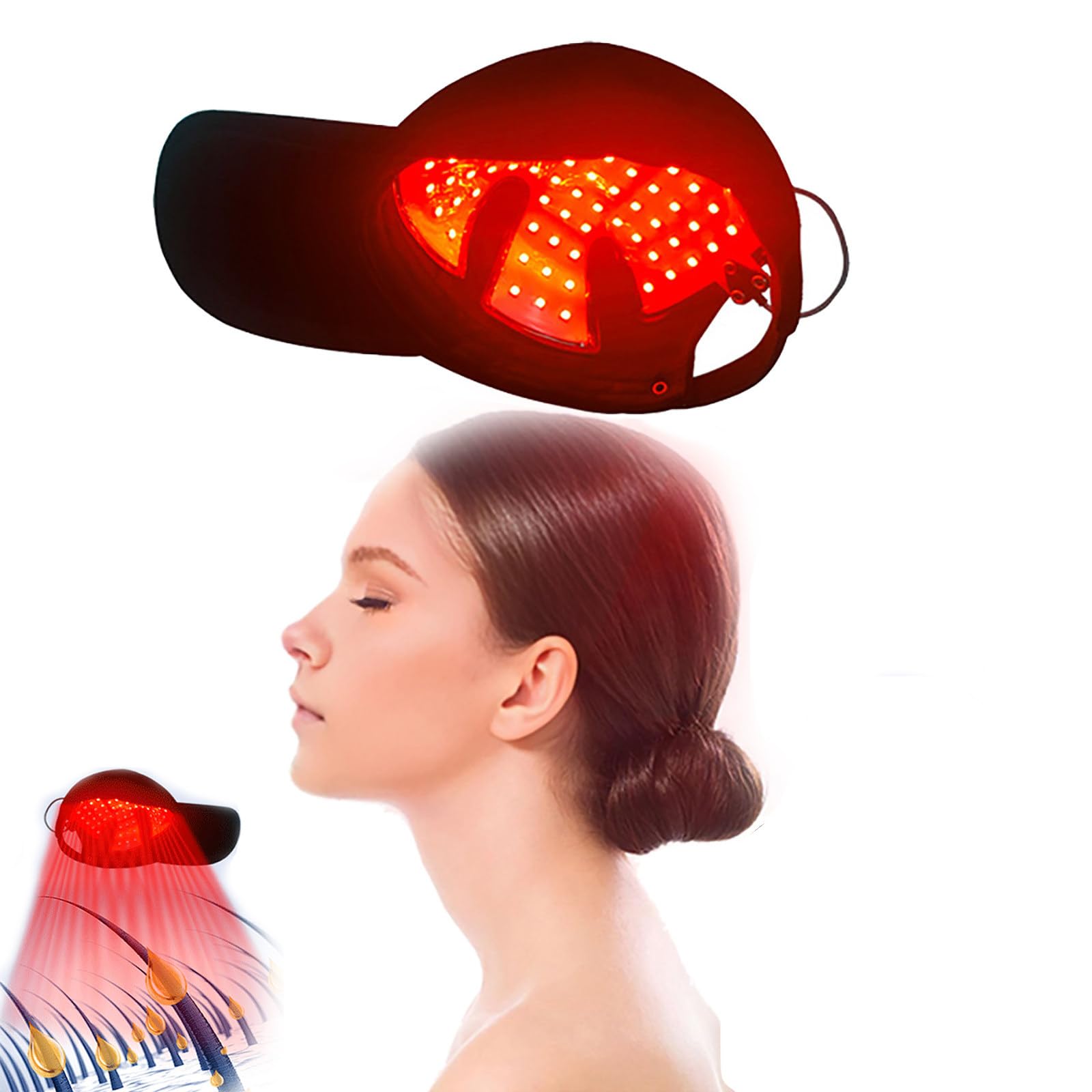This product uses 90 LED lamp beads with light wavelengths of 650 nm and 430 nm (red and blue light, respectively). Research shows that light with different wavelengths has different effects on the skin. Near-infrared rays can promote skin metabolism, reduce inflammation, improve blood circulation to the hair follicle, and protect hair. Blue light soothes the skin, promotes hair follicle growth, and protects the scalp. By promoting hair growth, this cap improves scalp health, reduces dandruff, and enhances the overall vitality and shine of the hair. Suitable for all hair types and genders, this hair treatment cap with red light is the ultimate choice for nourishing healthy hair, infusing each strand with strength and beauty. Item Name: Phototherapy Cap Light Output: 5 mW cm² Input Voltage: 5V 2A Number of LEDs: 90 pieces Lifespan: 10,000 hours Wavelength: 650 nm 430 nm Irradiance: 450 mW cm² Suitable Head Circumference: 58-62 cm Power Interface: Type-C Dimensions: 212.5 x 134 x 65 mm Product Weight: 80 g Package Contents: 1 Cap 1 Light Sheet 1 USB Cable Note: Due to differences in lighting and screen settings, the item's color may be slightly different from the pictures. Measurements are taken by hand, so the sizes shown may vary slightly.Universal Hair Care Solution: Suitable for all hair types and genders, this hair care cap with red light is the best choice for promoting healthy hair. Embrace safety and beauty with a product designed to meet your specific needs. Type-C Power Supply: 5V 2A Type-C power supply, safe 5V voltage, for worry-free use. This Type-C cable is portable and can be connected to any power source with a Type-C port, making it convenient to use. Hair Care Benefits: By promoting hair growth, this cap improves scalp health, reduces dandruff, and increases overall hair vitality and shine. Enhance your hair care routine with comprehensive benefits for healthier hair. Adjustable Time and Operation: Automatic setting, three speeds (high and low) for red and blue light, and a timer for 15 to 30 minutes. The ergonomic design ensures a lightweight and comfortable fit, allowing you to focus on hair care without sacrificing time. This cap gently nourishes healthy hair, offering maximum comfort with every use. It promotes hair growth: the product uses 90 LED lamp beads with light wavelengths of 650 nm and 430 nm (red and blue light). Near-infrared rays can stimulate skin metabolism, reduce inflammation, improve blood circulation to the hair follicle, and protect hair. Blue light soothes the skin, promotes hair follicle growth, and protects the scalp.Chapeau Recroissance Cheveux 90 Perles Led, 650 nm Et 430 nm, Chapeau De Recroissance Rapide De Cheveux Avec Lumière Bleu Rouge Pour Hommes Et Femmes, Minuterie De 15-30 Minutes, Renforce Les RacinesDESCRIPTION DU PRODUIT Le produit utilise 90 perles de lampe LED et les longueurs d'onde de la lumière sont respectivement 650 nm et 430 nm de lumière rouge et de lumière bleue. Selon la recherche, la lumière avec différentes longueurs d'onde a des effets différents sur la peau. Les rayons infrarouges proches peuvent favoriser le métabolisme de la peau, éliminer l'inflammation, améliorer la circulation sanguine du follicule pileux et protéger les cheveux. La lumière bleue calme la peau, favorise la croissance du follicule pileux et protège le cuir chevelu En favorisant la croissance des cheveux, ce bonnet améliore la santé du cuir chevelu, réduit les pellicules et améliore la vitalité et l'éclat général des cheveux. Convient à tous les types de cheveux et genres, le bonnet de soin des cheveux avec lumière rouge est le choix ultime pour nourrir les cheveux sains, en insufflant sécurité et beauté dans chaque mèche Nom de l'article : bonnet de photothérapie Puissance lumineuse : 5 mw cm2 Tension d'entrée: 5V 2A Quantité de LED : 90 pièces. Durée de vie : 1 0000 H Longueur d'onde : 650 nm 430 nm Irradiance : 450 mw cm2. Circonférence de la tête adaptée : 58-62 cm. Interface d'alimentation : type C. Dimensions : 212,5 x 134 x 65 mm. Poids du produit : 80 g Contenu de l'emballage : 1 bonnet 1 feuille lumineuse 1 câble USB. Note: En raison des différences de réglage de la lumière et de l'écran, la couleur de l'article peut être légèrement différente des images. Les mesures étant prises à la main, les tailles indiquées peuvent varier légèrement.Solution universelle pour le soin des cheveux : convient à tous les types de cheveux et à tous les genres, ce bonnet de soin des cheveux avec lumière rouge est le meilleur choix pour favoriser la santé des cheveux. Embrassez la sécurité et la beauté avec un produit conçu pour répondre à vos besoins spécifiques. Alimentation type C : alimentation de type C de 5 V 2 A, tension de sécurité de 5 V, utilisable en toute sécurité. Ce câble de type C est portable et peut être connecté à n'importe quelle source d'alimentation avec un port de type C, pratique à utiliser. Avantages pour le soin des cheveux : en favorisant la croissance des cheveux, ce bonnet améliore la santé du cuir chevelu, réduit les pellicules et augmente la vitalité et la brillance générale des cheveux. Améliorez votre routine de soin des cheveux avec des avantages complets pour des cheveux plus sains. Temps et marche réglables : réglage automatique, trois vitesses fortes et faibles pour lumière rouge et bleue, minuterie pendant 15 à 30 minutes. Le design humanisé garantit un ajustement léger et confortable, vous permettant de vous consacrer au soin des cheveux sans sacrifier le temps. Ce bonnet nourrit délicatement les cheveux sains, offrant un maximum de confort à chaque utilisation. Augmentation de la croissance des cheveux : le produit utilise 90 perles de lampe à LED et les longueurs d'onde de la lumière sont respectivement 650 nm et 430 nm de lumière rouge et bleue. Les rayons infrarouges proches peuvent favoriser le métabolisme de la peau, éliminer 