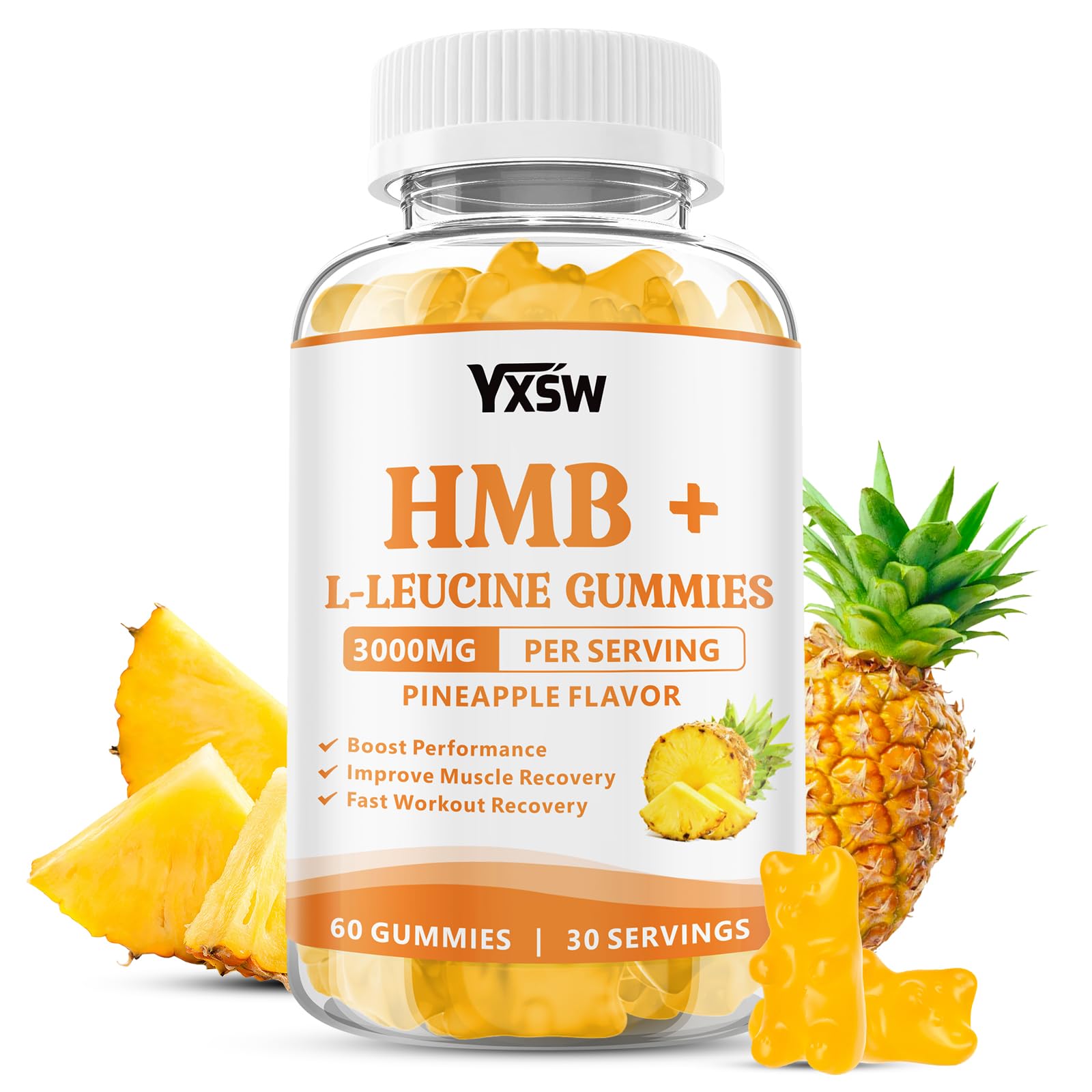 HMB and L-leucine Gummies 3000mg HMB and Leucine Amino Acid Supplements for Men & Women Sugar-Free Pineapple Flavor 60 Count 60 Count (Pack of 1)