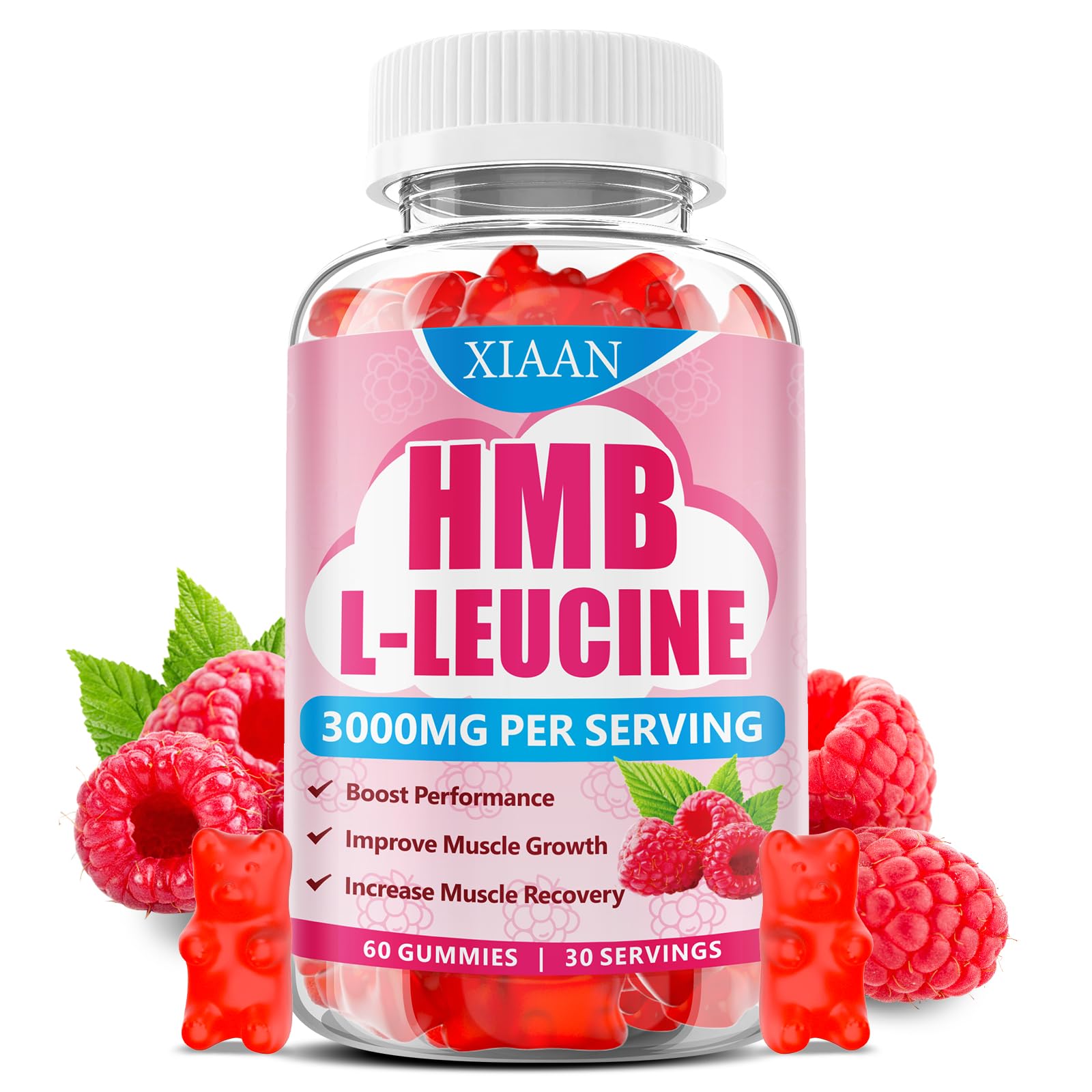 HMB and Leucine Gummies for Men & Women 3000mg Leucine HMB Amino Acids Supplement for Muscle Growth Muscle Relief and Workout Recovery Sugar-Free Raspberry Flavor 60 Count Raspberry 60 Count (Pack of 1)