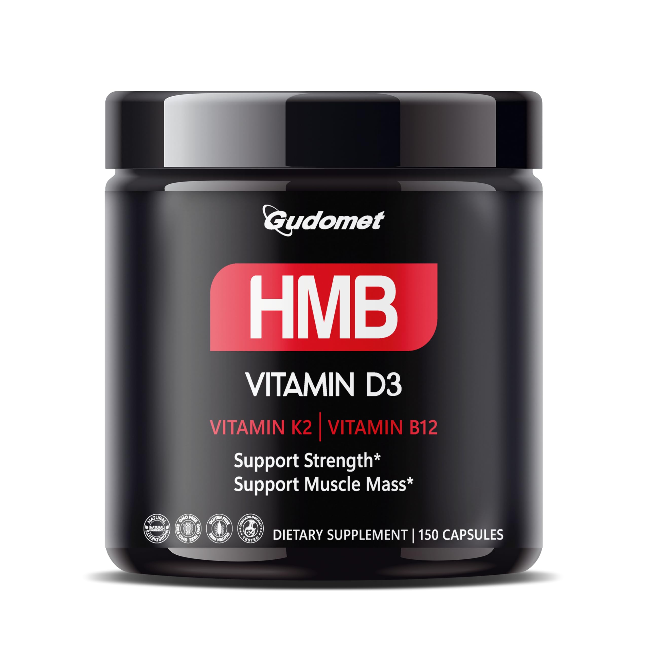 GUDOMET HMB with D3, K2 B12 – Muscle Health Support Supplement – 150 Capsules