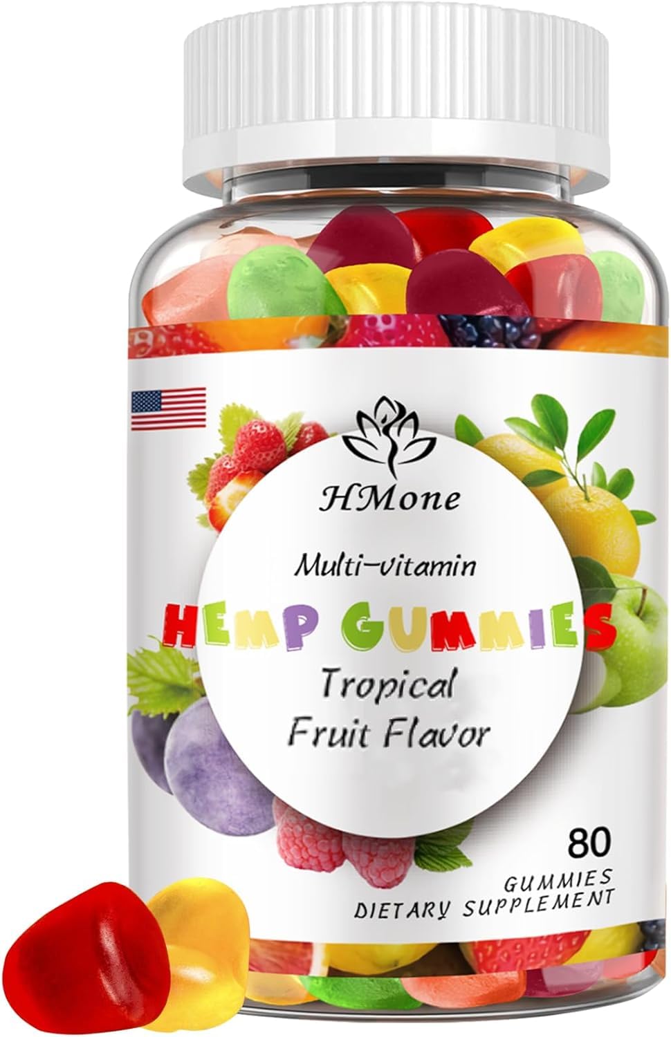 HMone 80 Count Gummies Non-GMO Vegan Low Sugar