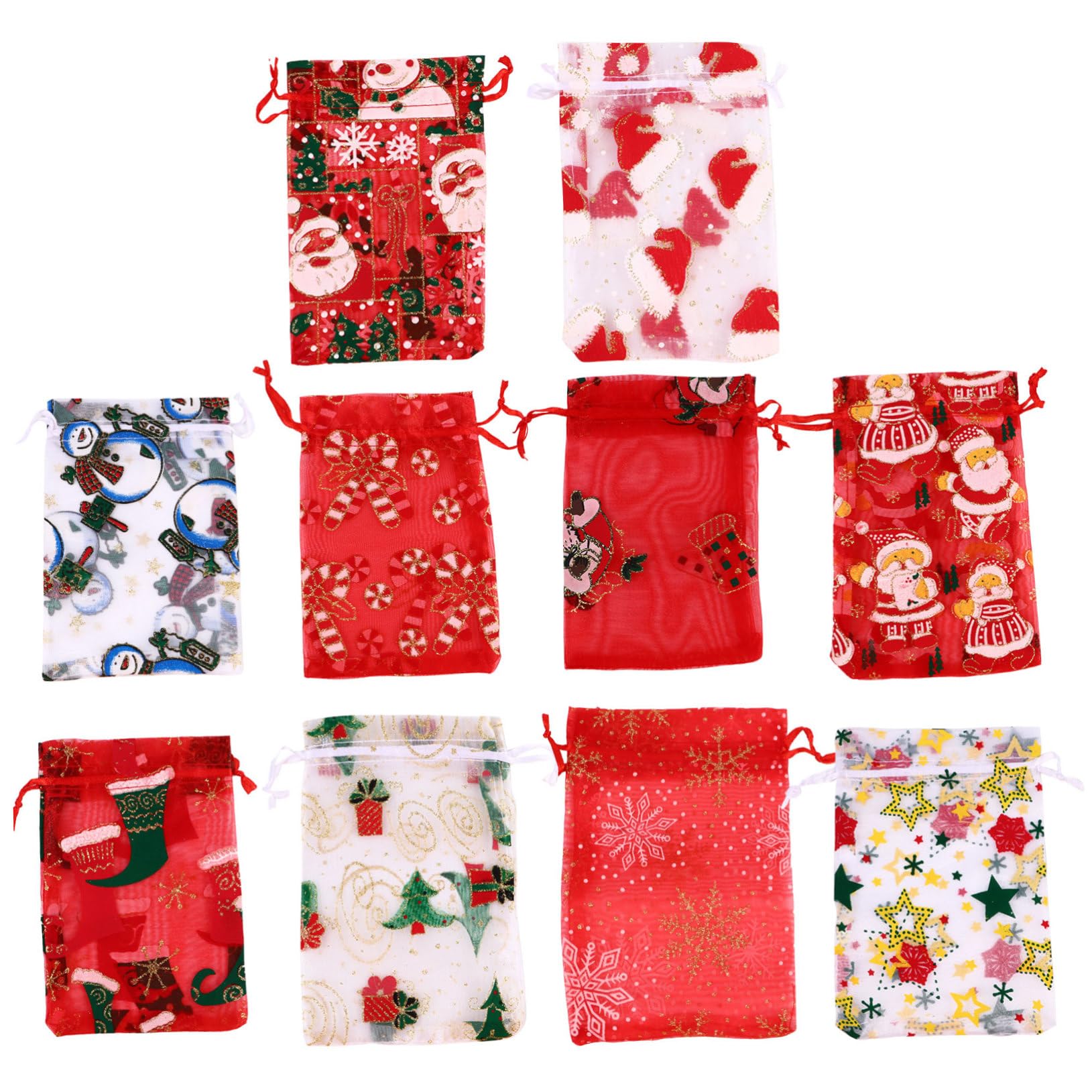 Xmas favor bag-- can be used to hold candies, cookies and little for kids. Clear goody bags-- christmas drawstring pouches for christmas wrapping, holiday extra- special, christmas decoration, christmas trees, wine bottles and more. Present bag-- a great for kids or used as a decoration. Small bags-- good choice for your christmas party wedding decoration. Christmas favor pouch-- great for christmas party, wedding, company, church, hotels,stores to favor .