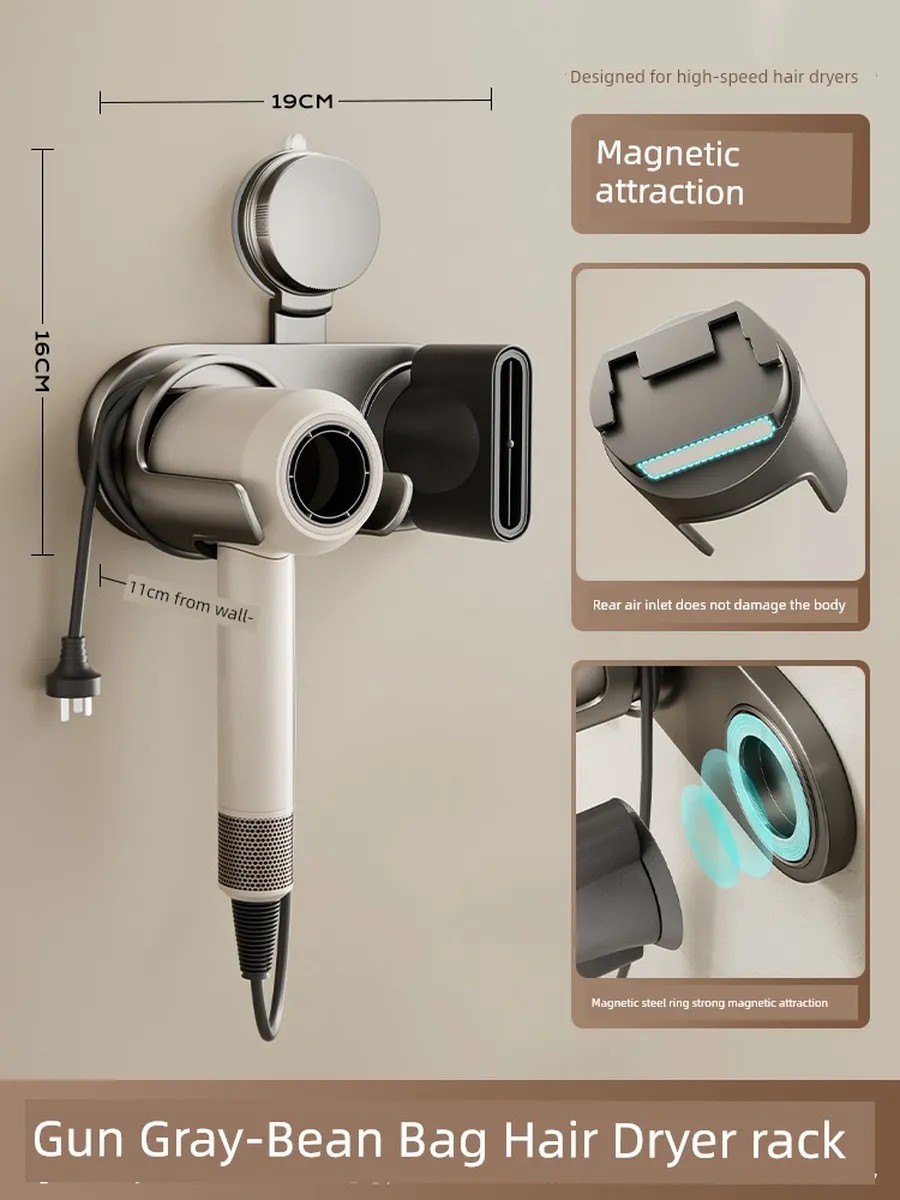 Hair Dryer Holder with Suction Cup and Magnet (Magnetic Pistol Dustproof - Convenient Storage)