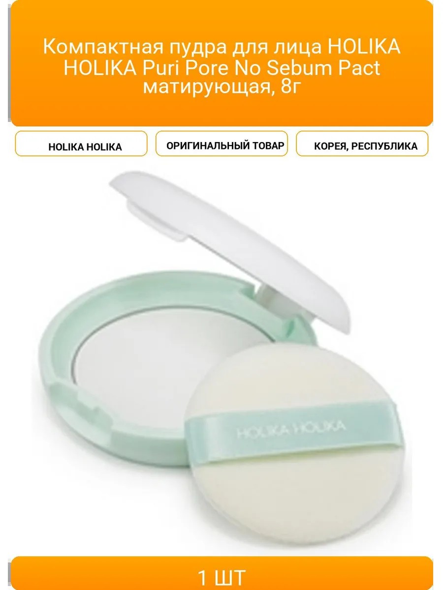 Название: Компактная пудра для лица HOLIKA HOLIKA Puri Pore No Sebum Pact (матирующая, 8 г)