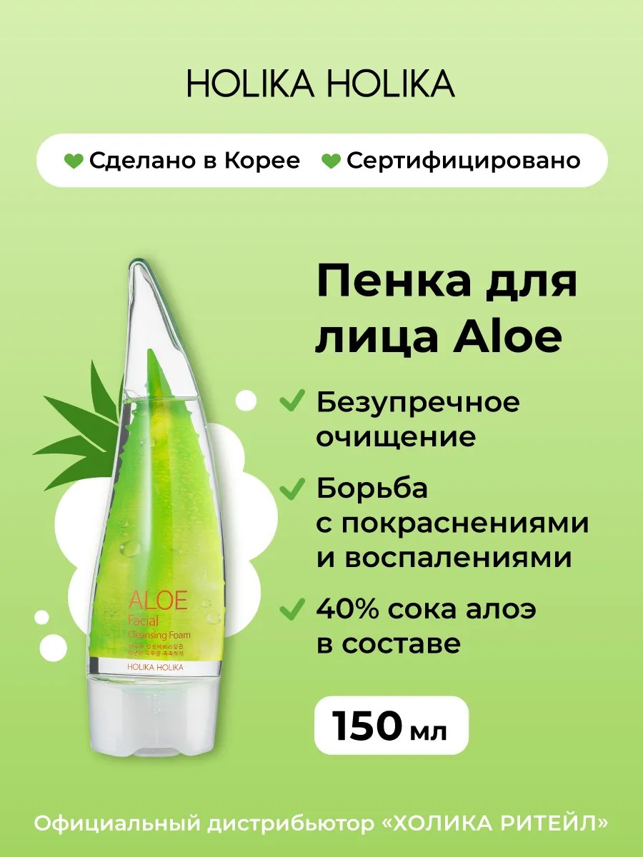 Очищающая пенка для лица Aloe Cleansing Foam от Holika Holika – это ваш верный помощник в ежедневном уходе за кожей. Она содержит 40% сока листьев алоэ вера с острова Чеджу, бережно очищает и увлажняет, не оставляя ощущения стянутости. Это средство идеально подходит для чувствительной и проблемной кожи, помогая справиться с черными точками и воспалениями благодаря центелле азиатской. Корейская косметика славится своей эффективностью, и эта пенка для умывания из Кореи не исключение. Она станет отличным дополнением к вашему уходовому арсеналу, обеспечивая мягкое, но глубокое очищение пор. Подходит как для женского, так и для мужского использования, что делает её универсальным выбором для всей семьи. Пенка для умывания лица – это не только средство для снятия макияжа, но и полноценный уход за кожей.