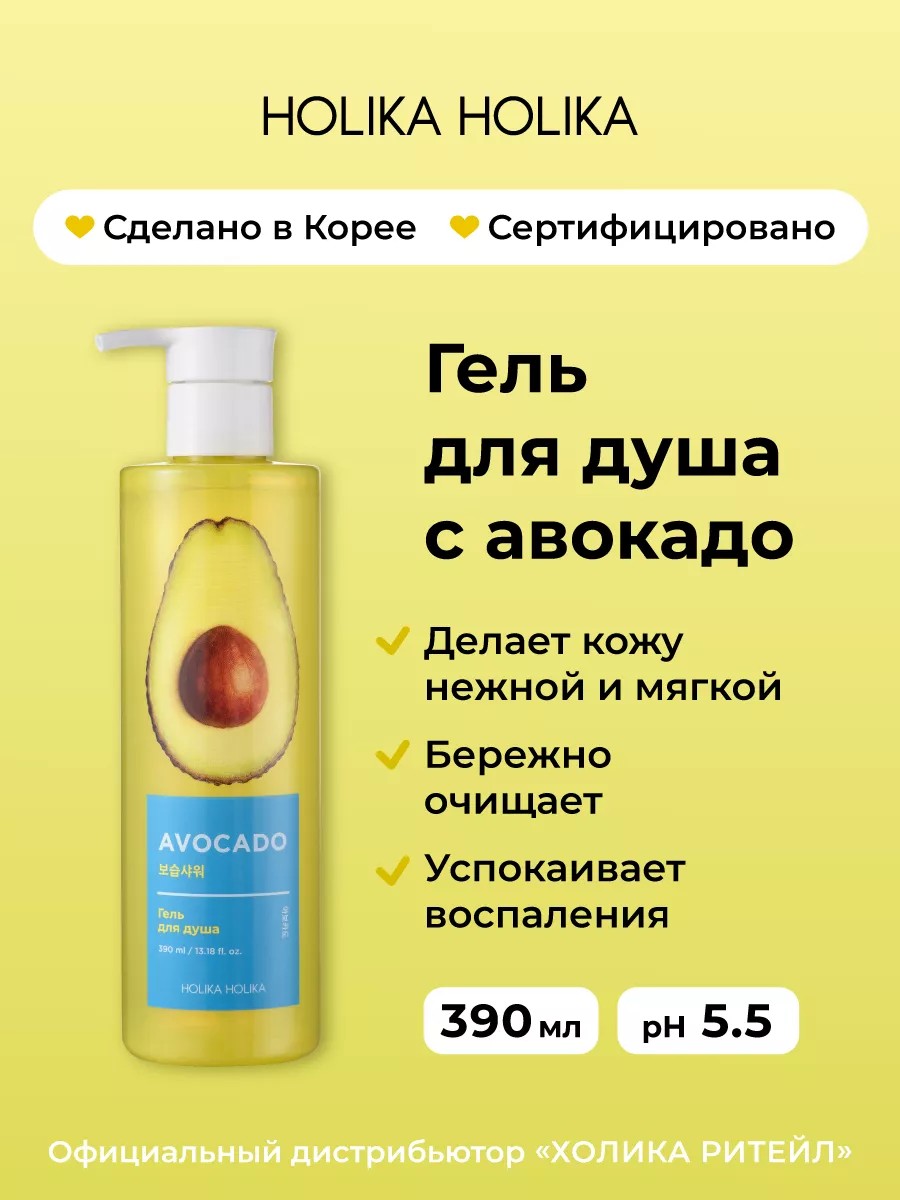Погрузитесь в мир корейской косметики с увлажняющим гелем для душа Avocado Body Cleanser от Holika Holika.