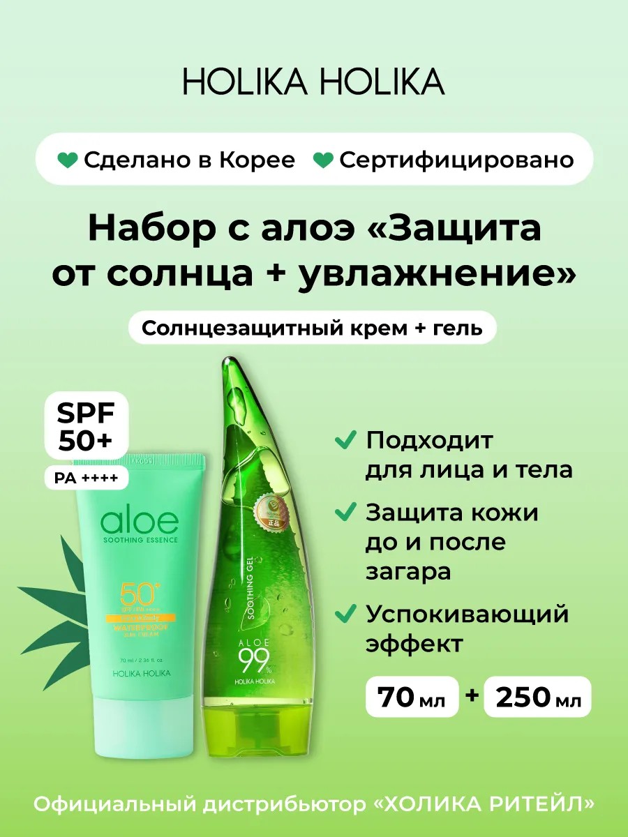 | Комплектация | солнцезащитный крем с алоэ - 1 шт; Гель алоэ 250 мл - 1 шт |