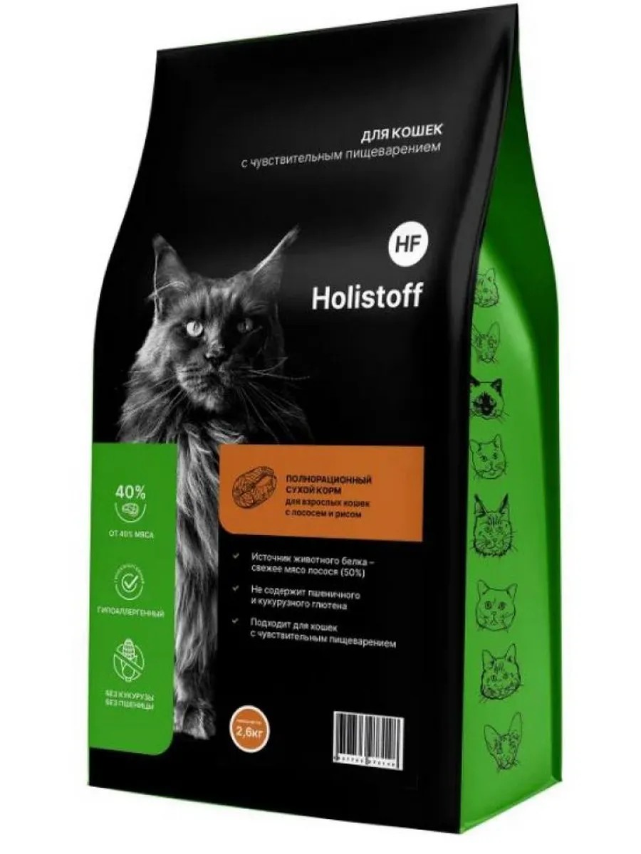HOLISTOFF Сухой корм для взрослых кошек с лососем и рисом, 2,6кг