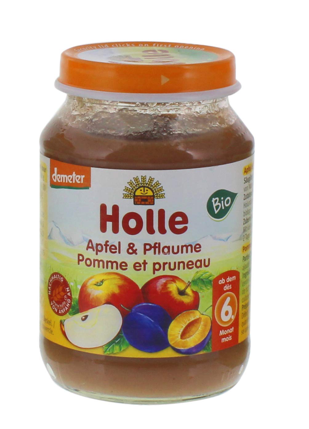 Certified organic in the EU. INGREDIENTS Apple 55 , water, plum 15 , apple juice concentrate. 10 rice juice, blackcurrant juice concentrate. Lemon juice concentrate. INSTRUCTIONS FOR USE Single-serve jars like pure apple or pear have a mild taste and are particularly suitable for introducing first spoonfuls of fruit. These fruit and other fruit jars can be used as part of a cereal and fruit meal after the 4th month. The cups are ideal for travel or when you need to be quick. Single-serve jars like pure apple or pear have a mild taste and are particularly suitable for introducing first spoonfuls of fruit. These fruit and other jars can SAFETY WARNING Allergy Information: Not in production: eggs, fish, milk, tree nuts, peanuts, sesame, gluten, soy, celery, mustard, lupin, molluscs See moreHolle Pomme et prune bio (1 x 190 g)DESCRIPTION DU PRODUIT DESCRIPTION DU PRODUIT Certification label bio enEU. INGRÉDIENTS Pomme 55 , eau, prune 15 , concentré de jus de pomme. 10 de jus de riz, concentré de jus de cassis noir. Concentré de jus de citron MODE D'EMPLOI Les mono verrines comme la pomme pure ou la poire sont douces au goût et conviennent particulièrement pour les premières cuillères à fruits. Ces bocaux à fruits et autres peuvent être utilisés dans le cadre du repas des céréales et des fruits après le 4ème mois. Les verres sont adaptés pour les déplacements ou quand il faut aller vite. Les verres mono comme la pomme pure ou la poire ont un goût doux et conviennent particulièrement pour les premières cuillères à fruits. Ces bocaux à fruits et autres peuvent AVERTISSEMENT DE SÉCURITÉ Informations sur les allergies : pas en production : œufs, poissons, lait, noix, cacahuètes, sésame, gluten, soja, céleri, moutarde, lupine, mollusque Voir plus