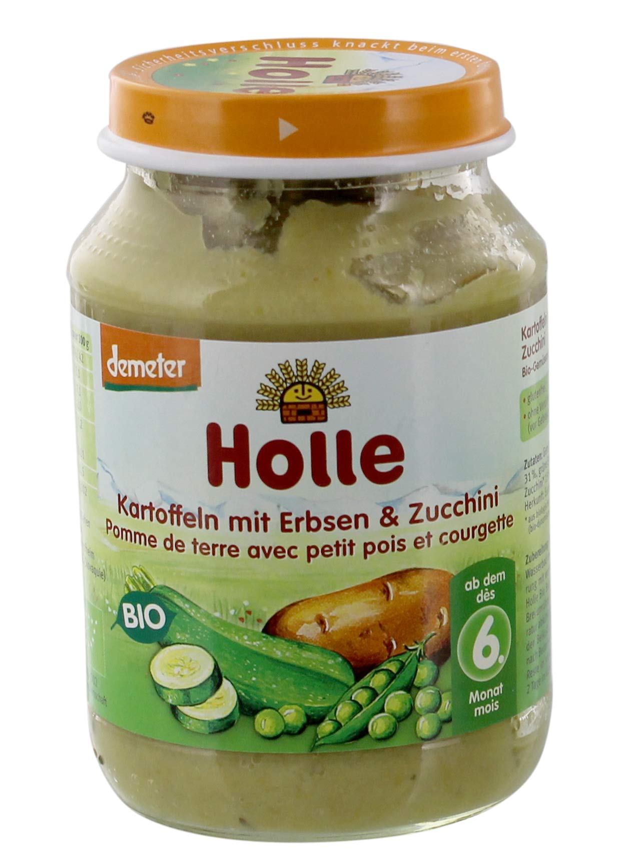 Finished: From A to Z, like zucchini. Well-balanced, versatile, and varied, Holle jars are perfect for infants. Certified organic in the EU. INGREDIENTS Vegetables 68 potatoes, 31 green peas, 22 zucchini, 15 water. INSTRUCTIONS FOR USE These vegetable jars are ideal for introducing solid foods after 4 months. For older babies, there are various meal plans available. After 8 months, the junior jars can be used as a transition to family meals, as they have a slightly thinner consistency. These jars are convenient for travel or when you need to be quick. Junior glasses, suitable for babies 8 months and older. SAFETY WARNING Allergy Information: Not used in production: eggs, fish, milk, nuts, peanuts, sesame, gluten, soy, celery, mustard, lupin, molluscs See moreHolle Pommes de terre bio avec pois et courgettes (1 x 190 g)DESCRIPTION DU PRODUIT DESCRIPTION DU PRODUIT Finition : de A à la pomme à Z comme la courgette. Bien équilibré, polyvalent et varié, l'âge du nourrisson commence avec les verres Holle. Certification label bio enEU. INGRÉDIENTS Légumes 68 pommes de terre 31 pois verts. 22 , courgette 15 , eau. MODE D'EMPLOI Les pots à légumes sont parfaits pour commencer avec des aliments après la 4ème mois. Pour les bébés plus âgés, il existe des types de menus. Les verres junior après le 8ème mois, ils peuvent être utilisés comme transition vers les frais de famille, car ils ont une consistance légèrement plus partielle. Les bocaux sont pratiques pour les déplacements ou quand il faut aller vite. Les pots à légumes sont parfaits pour commencer avec des aliments après la 4ème mois. Pour les bébés plus âgés, il existe des types de menus. Les verres junior après le 8ème mois, convient pour un AVERTISSEMENT DE SÉCURITÉ Informations sur les allergies : pas en production : œufs, poissons, lait, noix, cacahuètes, sésame, gluten, soja, céleri, moutarde, lupine, mollusque Voir plus