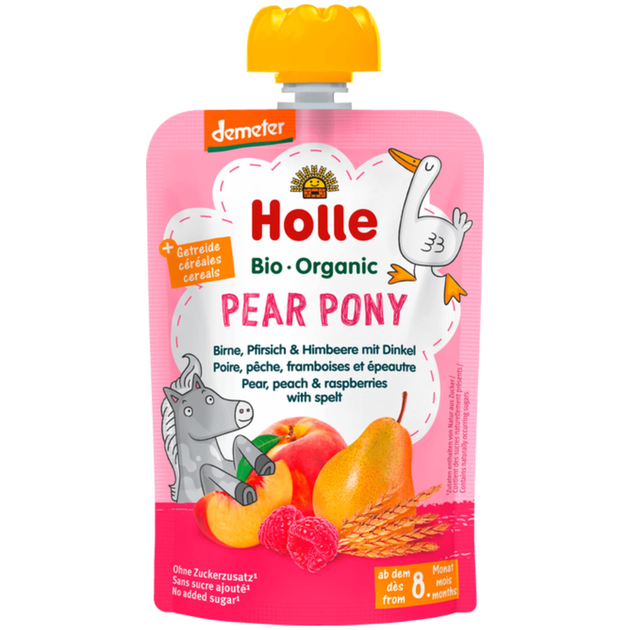 HOLLE Pouchy Pear Pony Poire pêche et framboise avec épeautre (12 x 100 g)